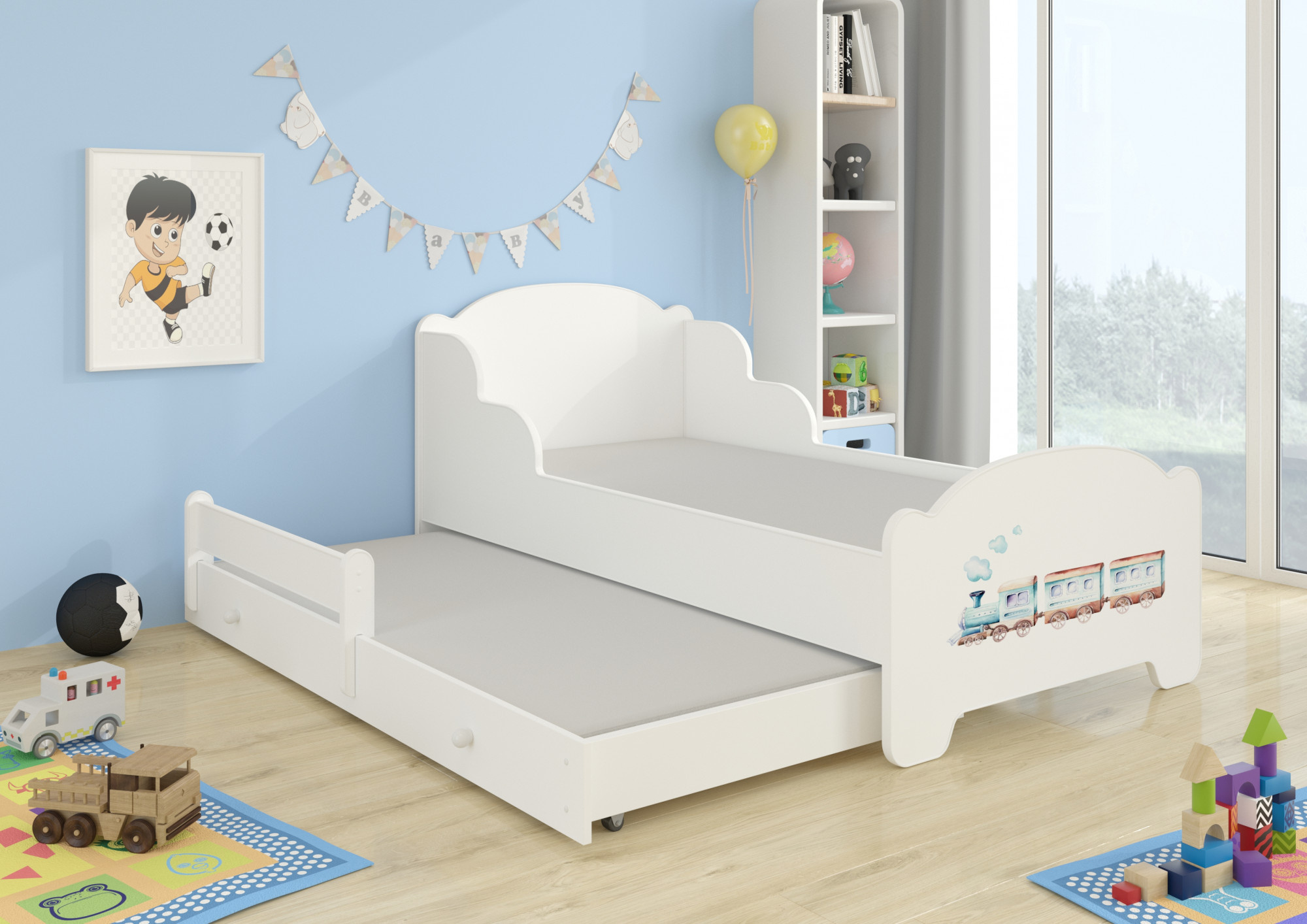 Dvojlůžko z kolekce AMADIS s jednoduchým tvarem má zásuvku s funkcí spaní, která se skvěle hodí do pokoje pro dva sourozence. Je také ideálním řešením pro návštěvu nečekaných hostů. Díky velkému výběru grafik snadno vybereš model, který nejlépe odpovídá zájmům tvého dítěte. V procesu výroby byly použity ekologické vodní barvy, které jsou bezpečné a odolné vůči mechanickému poškození. Navíc postel nemá ostré rohy a grafika je chráněna laminátem. Další výhodou je snímatelný potah matrace na zip, který lze snadno sundat a vyprat.