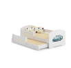 Dvojlůžko z kolekce PEPE II s jednoduchým tvarem má zásuvku s funkcí spaní, která se skvěle hodí do pokoje pro dva sourozence. Je také ideálním řešením pro návštěvu nečekaných hostů. Díky velkému výběru grafik snadno vybereš model, který nejlépe odpovídá zájmům tvého dítěte. V procesu výroby byly použity ekologické vodní barvy, které jsou bezpečné a odolné vůči mechanickému poškození. Navíc postel nemá ostré rohy a grafika je chráněna laminátem. Další výhodou je ochranná zábrana zajišťující bezpečnost během spánku a snímatelný potah matrace na zip, který lze snadno sundat a vyprat.