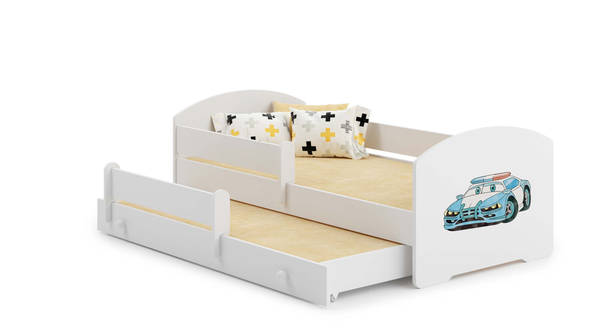 Dvojlůžko s bariérkou a matracemi PEPE II POLICE CAR 160x80 Bílá