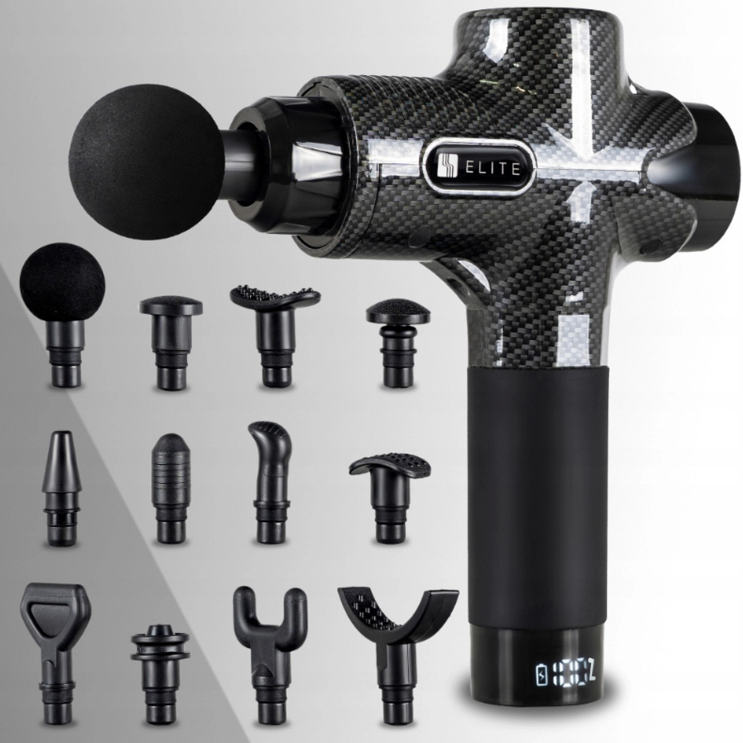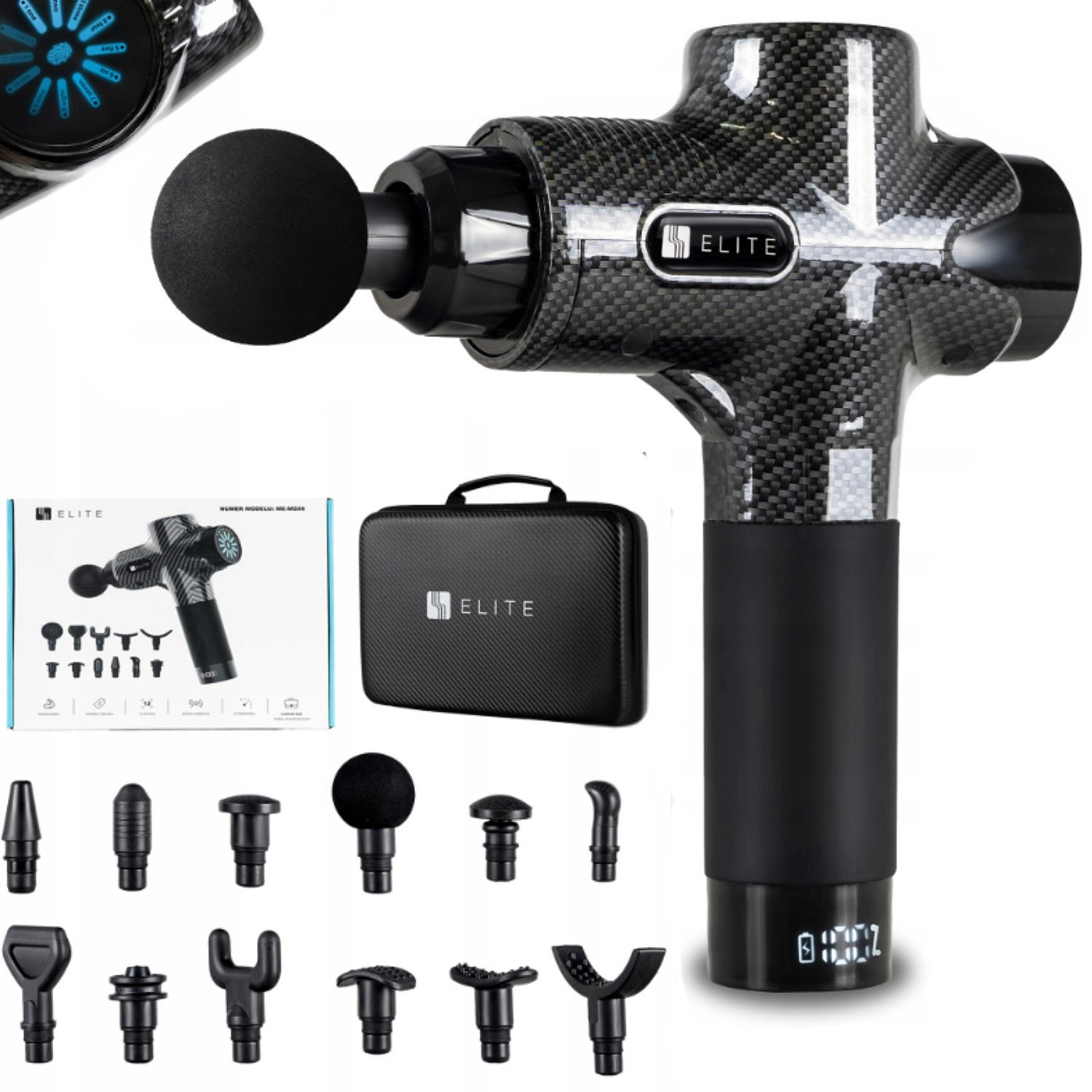 Masážní pistole ME-MG06 s 12 vyměnitelnými nástavci černá