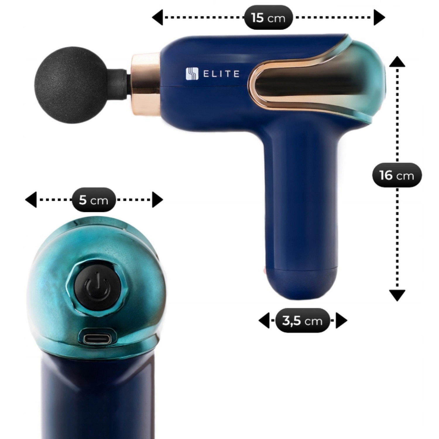 Masážní pistole ME-MG08 se 3 vyměnitelnými nástavci Modrá