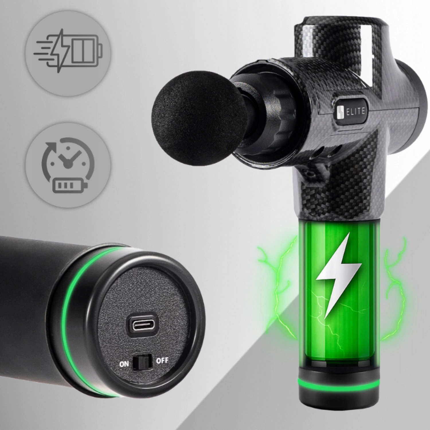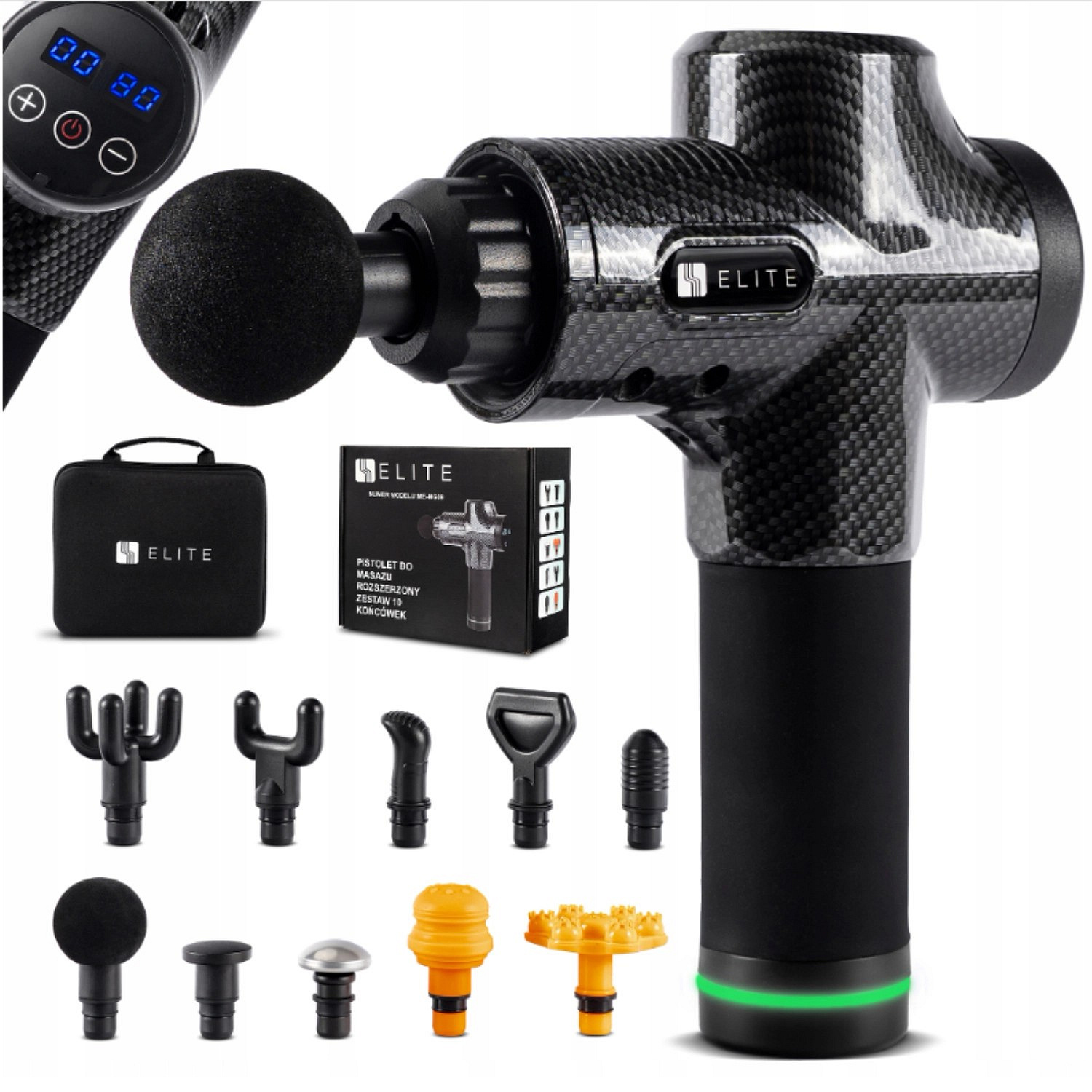Masážní pistole ME-MG09 s 10 vyměnitelnými nástavci Černá