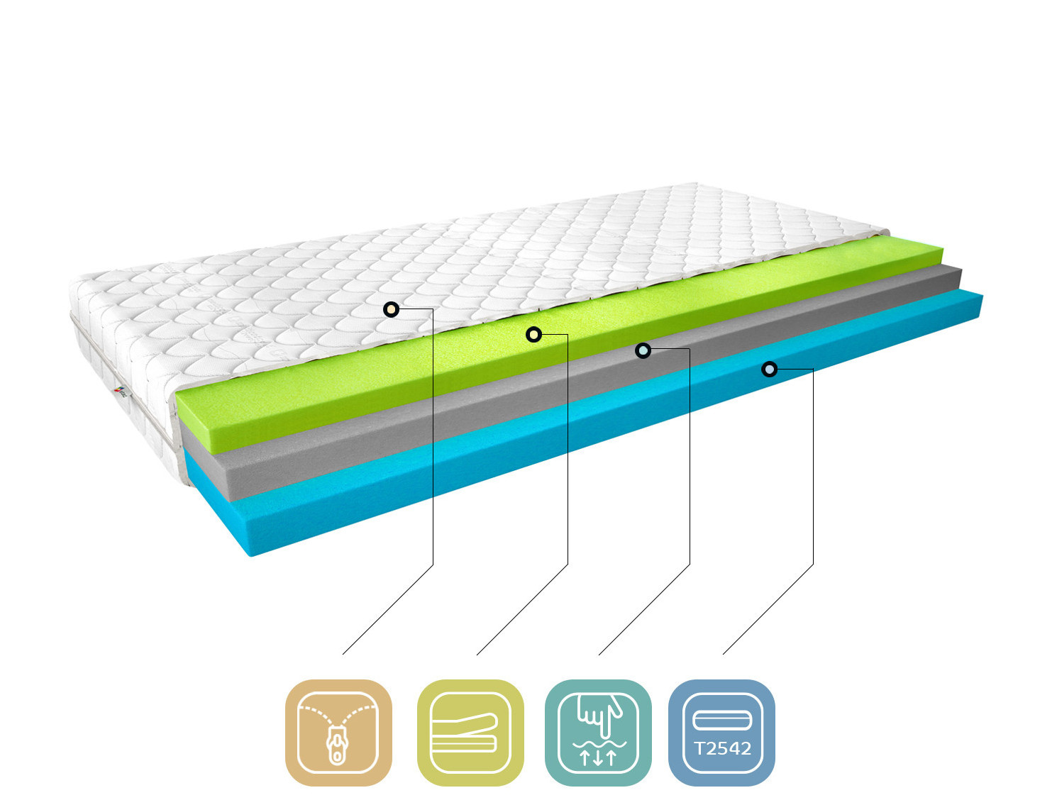Matrace Simona je výrobek z nejkvalitnějších materiálů, ideální pro lidi, kteří si cení vynikající kvality spánku. Díky použití tří pěn je to mimořádně pohodlná matrace. Vysoce elastická HR pěna je obklopena Visco pěnou na jedné straně, která je extrémně měkká, a pěnou T2542 na druhé straně. Simona termoelastická matrace je pokryta snímatelným kašmírovým potahem.