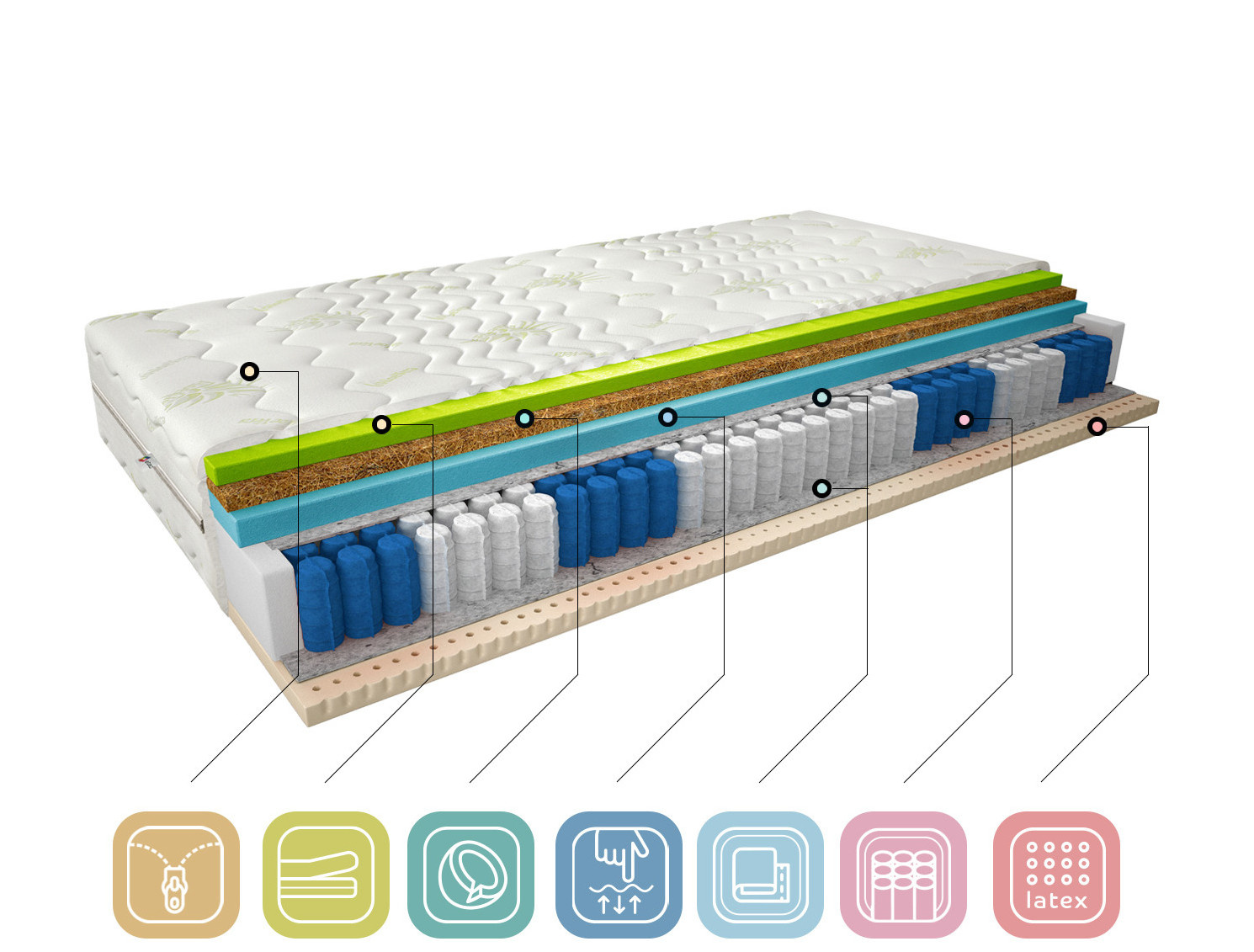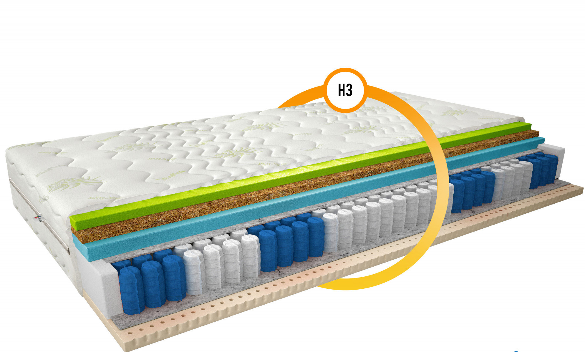 Pohodlný noční spánek je receptem na úspěšný den, proto si uvědomujeme důležitost výběru dokonalé matrace podle vašich preferencí. Termoelastická matrace Sola v potahu z aloe vera je ideální volbou pro lidi, kteří si cení kvalitního spánku. Matrace Sola se skládá z taštičkových pružin, které zajišťují, že matrace není vlnitá a nevibruje, a tří typů pěny. Latexová pěna na jedné straně a vysoce flexibilní HR pěna a Visco pěna na druhé straně, oddělené kokosovou deskou, která zvyšuje tvrdost matrace, celek je doplněn snímatelným potahem z aloe vera.