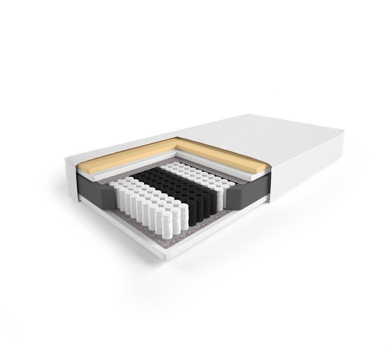 Jádro matrace tvoří kapsová pružina, která má 7 zón s různou tvrdostí.