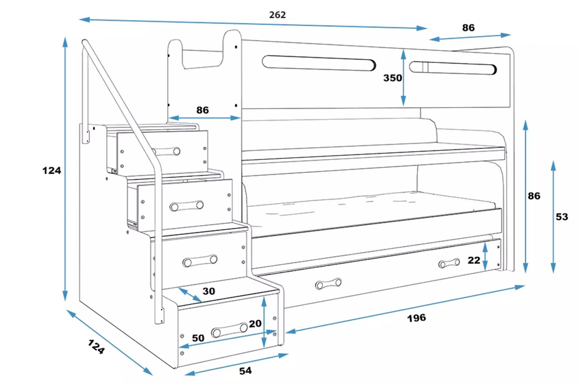 Patrová postel s psacím stolem MAX 1 Bílá, 3 místná, 80 X 200