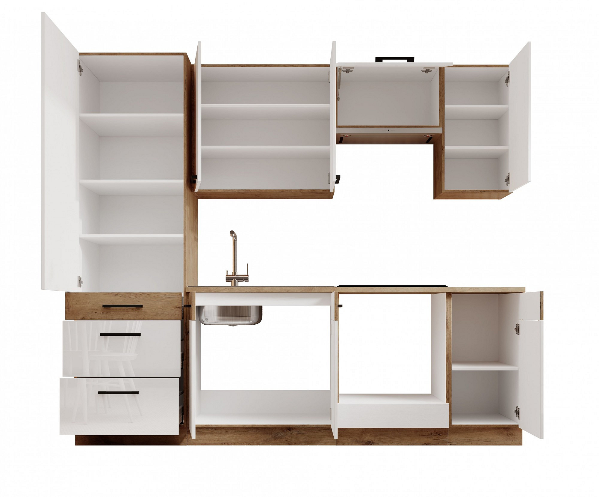Kolekce Vika je sada kuchyňských skříněk, skládající se ze 7 modulů, které vám umožní uložit veškeré potřebné kuchyňské příslušenství. Sada Vika je přizpůsobena pro montáž trouby. Díky spojení bílé s lancelotem se kuchyně stává útulným místem, kde je vaření velkým potěšením. Sada má desku, která se skvěle osvědčuje při každodenním používání. Díky použití vysoce kvalitních materiálů jsou nábytek odolný a odolný vůči poškození.