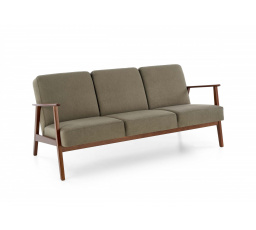 - Moderní design: Elegantní kombinace olivové látky a tmavého dřeva.