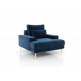Už vás nebaví neustále opakovat modely nábytku? Hledáte křeslo, které se bude odlišovat od zbytku vašeho interiéru? Podívejte se na tento návrh v odstínu tmavě tmavě modré. Za svůj jedinečný charakter vděčí model jistě zlatým, subtilním nožkám, které mu dodávají neuvěřitelnou eleganci a třídu. Kromě toho je tato židle ekvivalentem velkého pohodlí. Má pružný sedák složený na bázi pružin a vysoce pružné HR pěny a měkké polštáře na opěradle, což výrazně zvyšuje pohodlí. Vyberte si netradiční kus nábytku do obývacího pokoje! Moderní křeslo Nicole , šířka: 105, výška: 76/93, hloubka: 99.