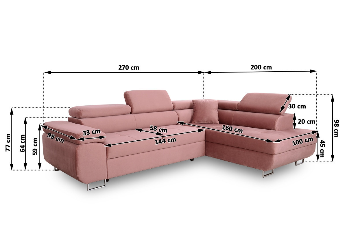 Moderní Rohová sedací souprava Annabelle do obývacího pokoje, šířka: 270, výška: 77/98, hloubka: 200, Spací plocha: 193 x 125, Montáž: Vlastní. Moderní Rohová sedací souprava Annabelle do obývacího pokoje.