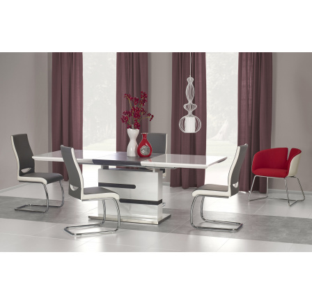 rozkládací stůl, rozměry: 160-220/90/76 cm, materiál: lakovaná MDF / laminovaná MDF / nerezová ocel, barva: bílá a šedá