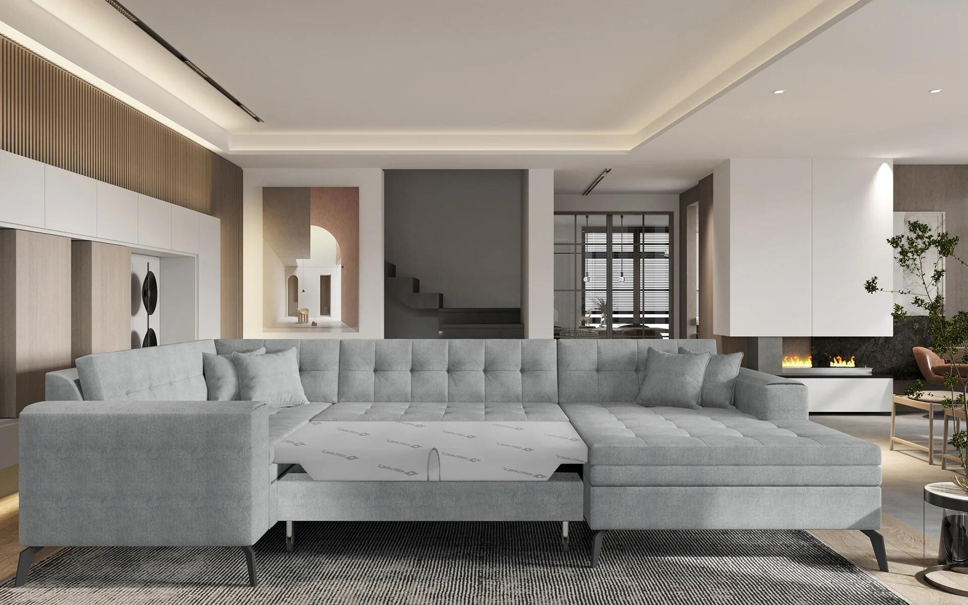 Investujte do kvality a stylu s naší sedací soupravou ve tvaru U MONTEZ a užijte si pohodlí a eleganci, kterou přináší do vašeho obývacího pokoje.