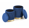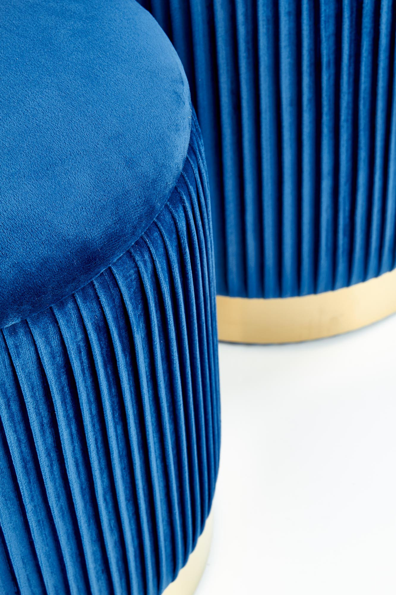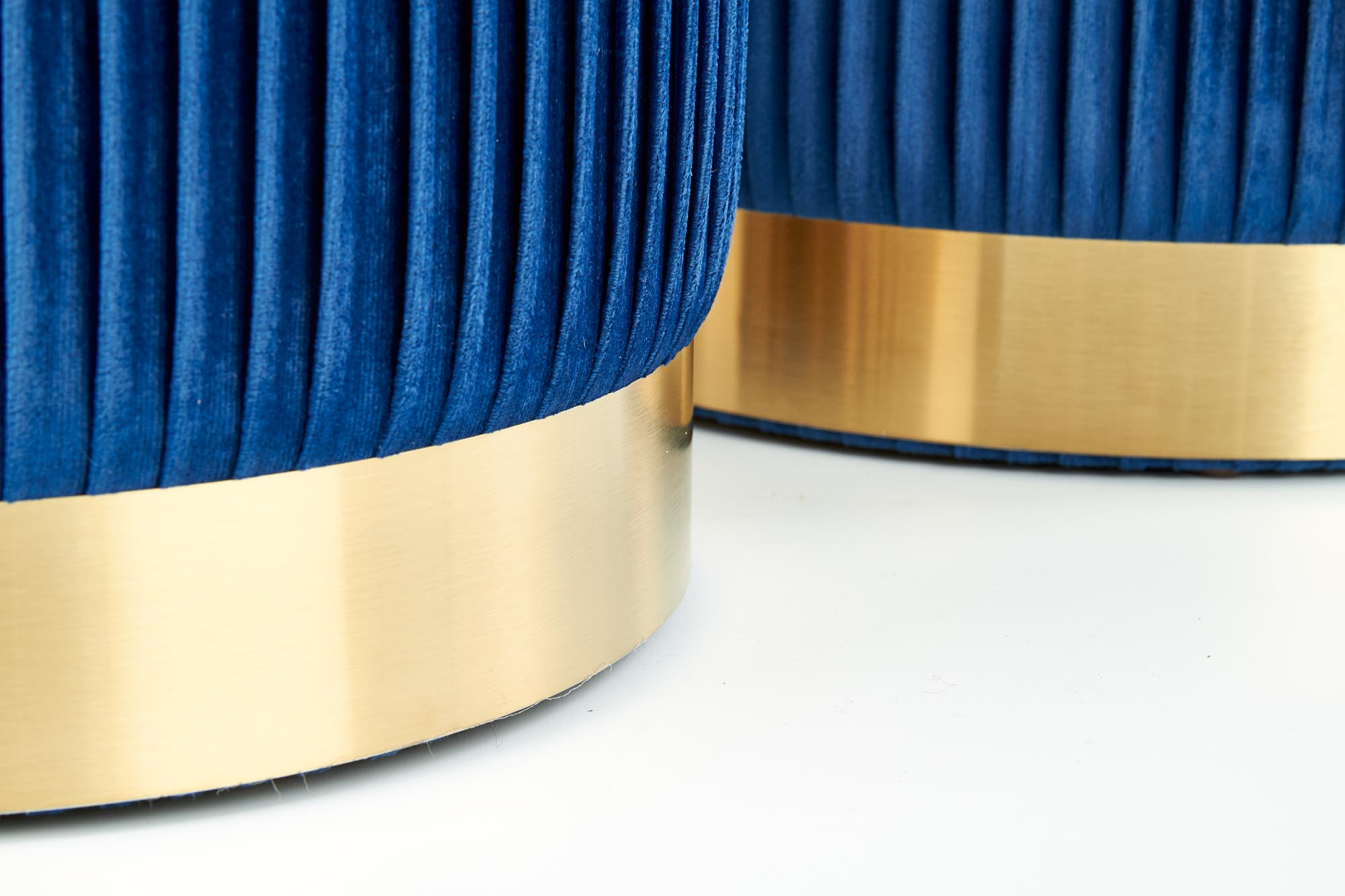rozměry: 36/44 a 31/38 cm, sada 2 pufů, látka: látka / chromovaná ocel, barva: tmavě modrá / zlatá