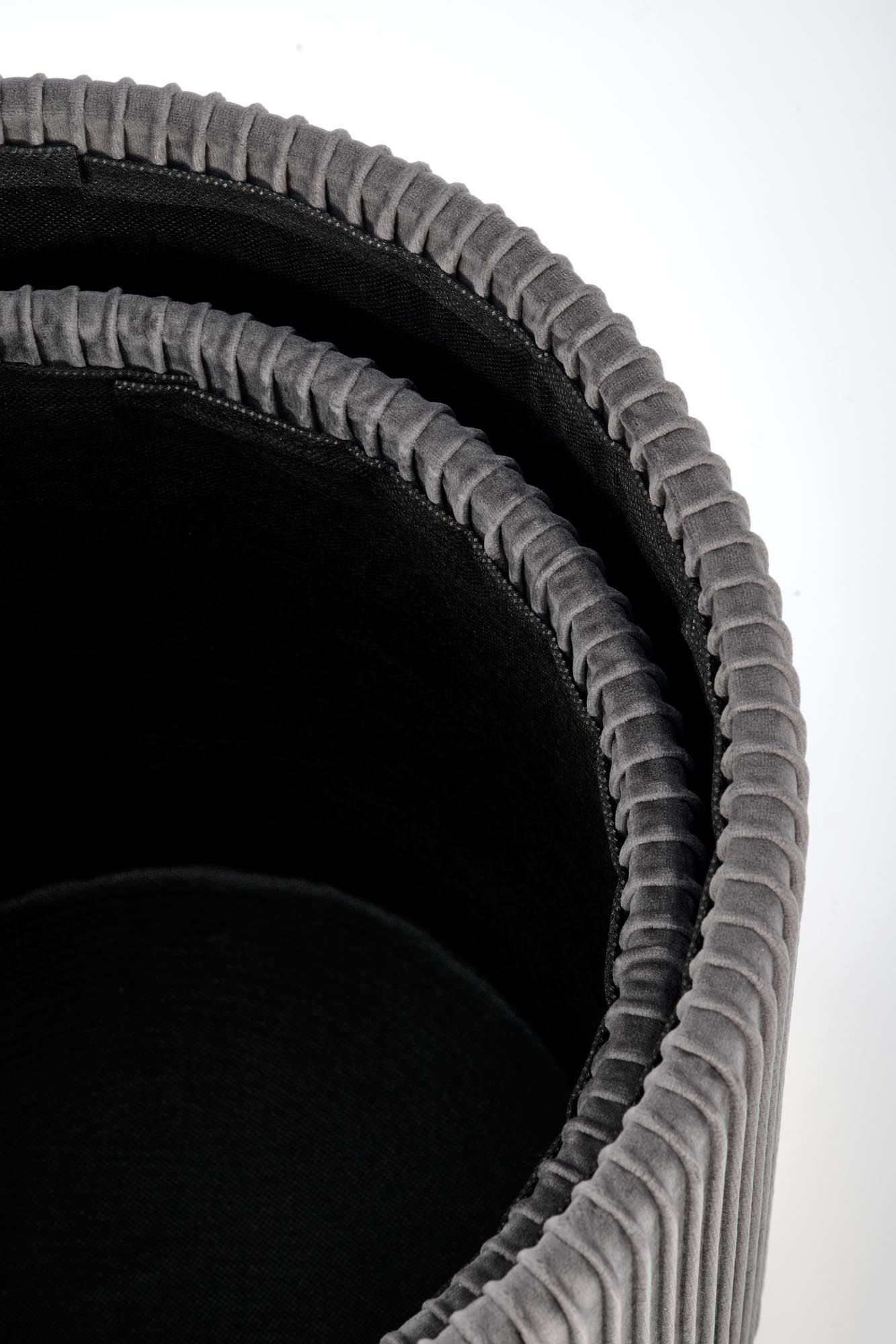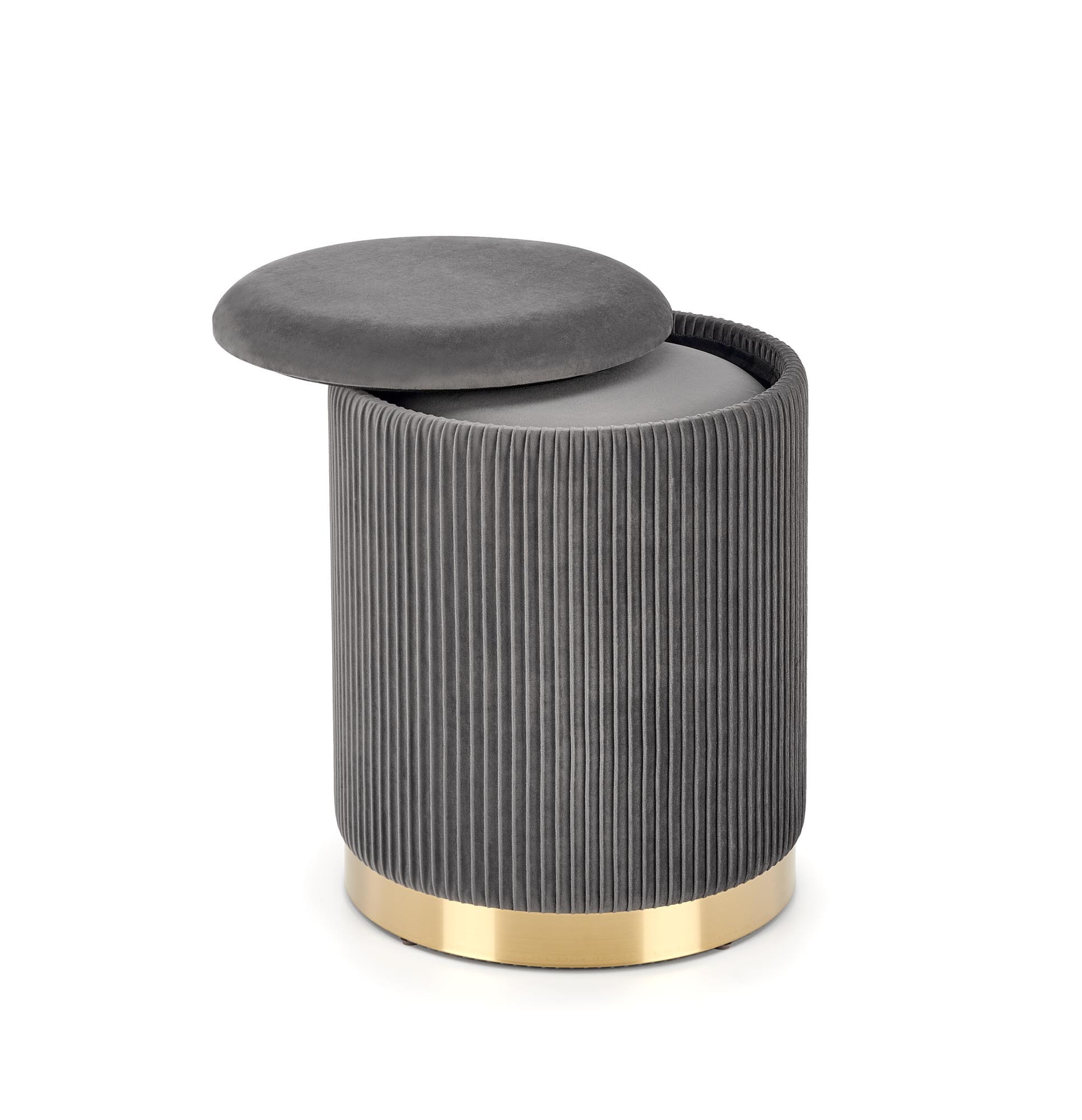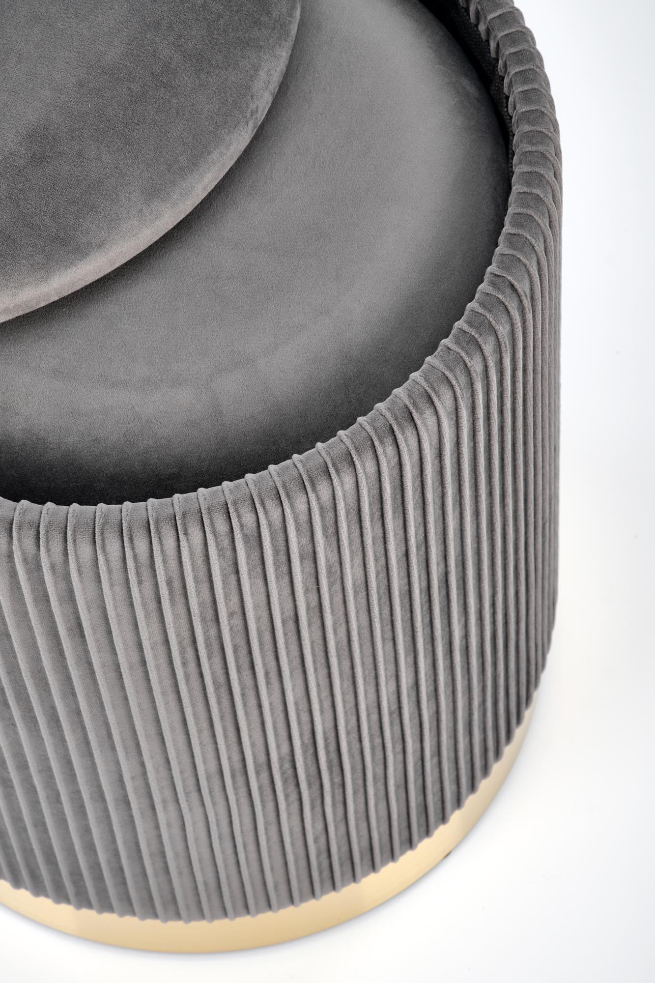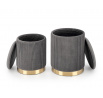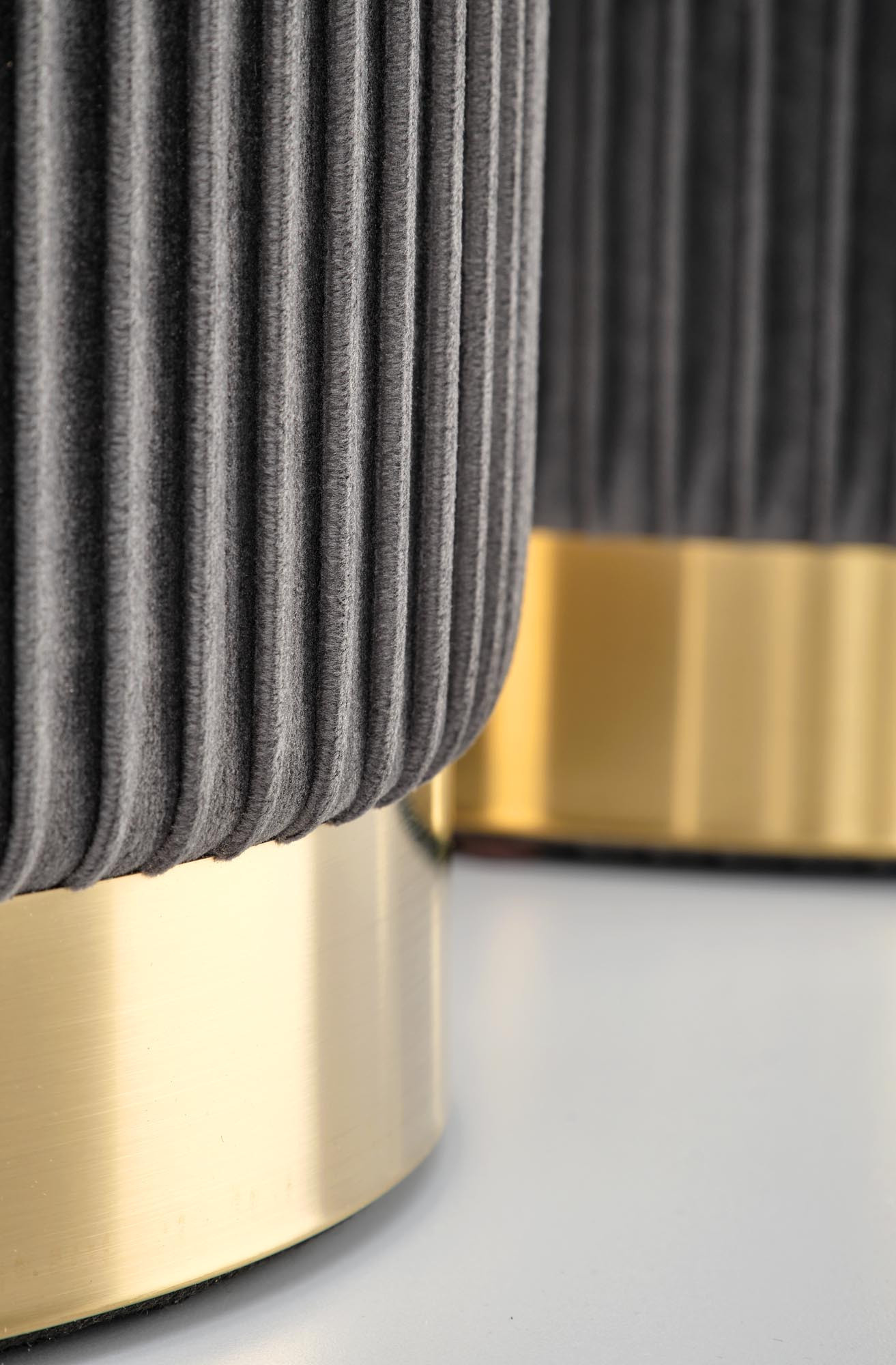 rozměry: 36/44 a 31/38 cm, sada 2 pufů, materiál: látka / chromovaná ocel, barva: šedá / zlatá