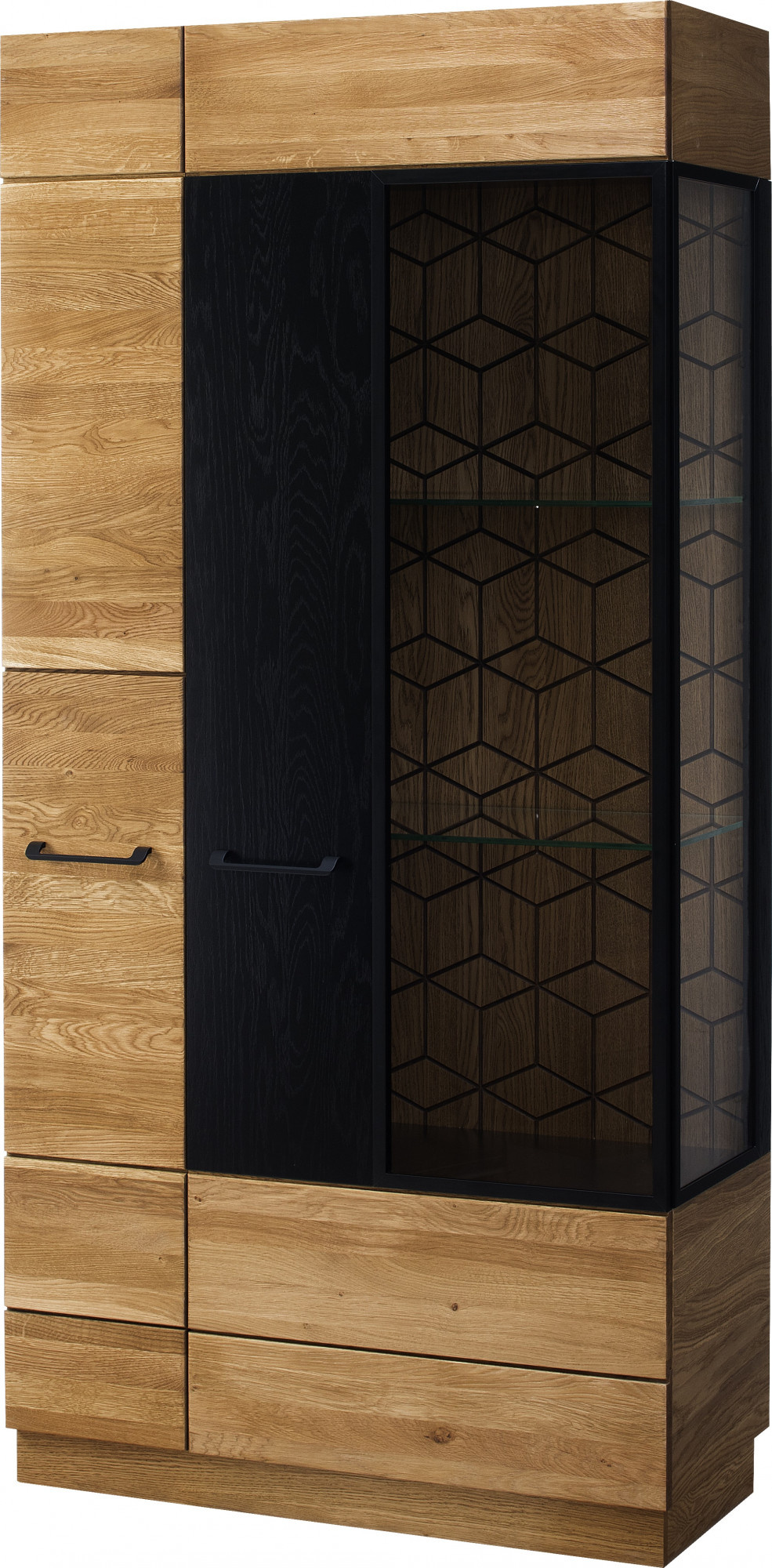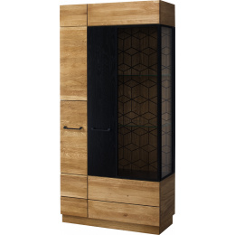 Vitrína MONURIKI 12, 2 dvířková dub medový s elementy černý mat -smontovaný nábytek
