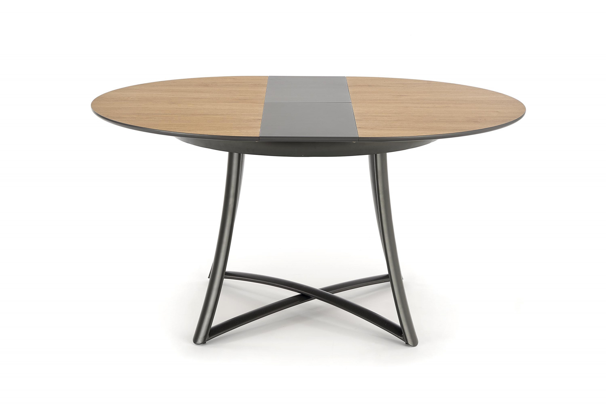 Rozměry: 118÷148/118/76 cm, rozkládací stůl, materiál: MDF laminovaná / MDF lakovaná / ocel práškově lakovaná, barva: horní deska - zlatý dub / černá, nohy - antracitová.