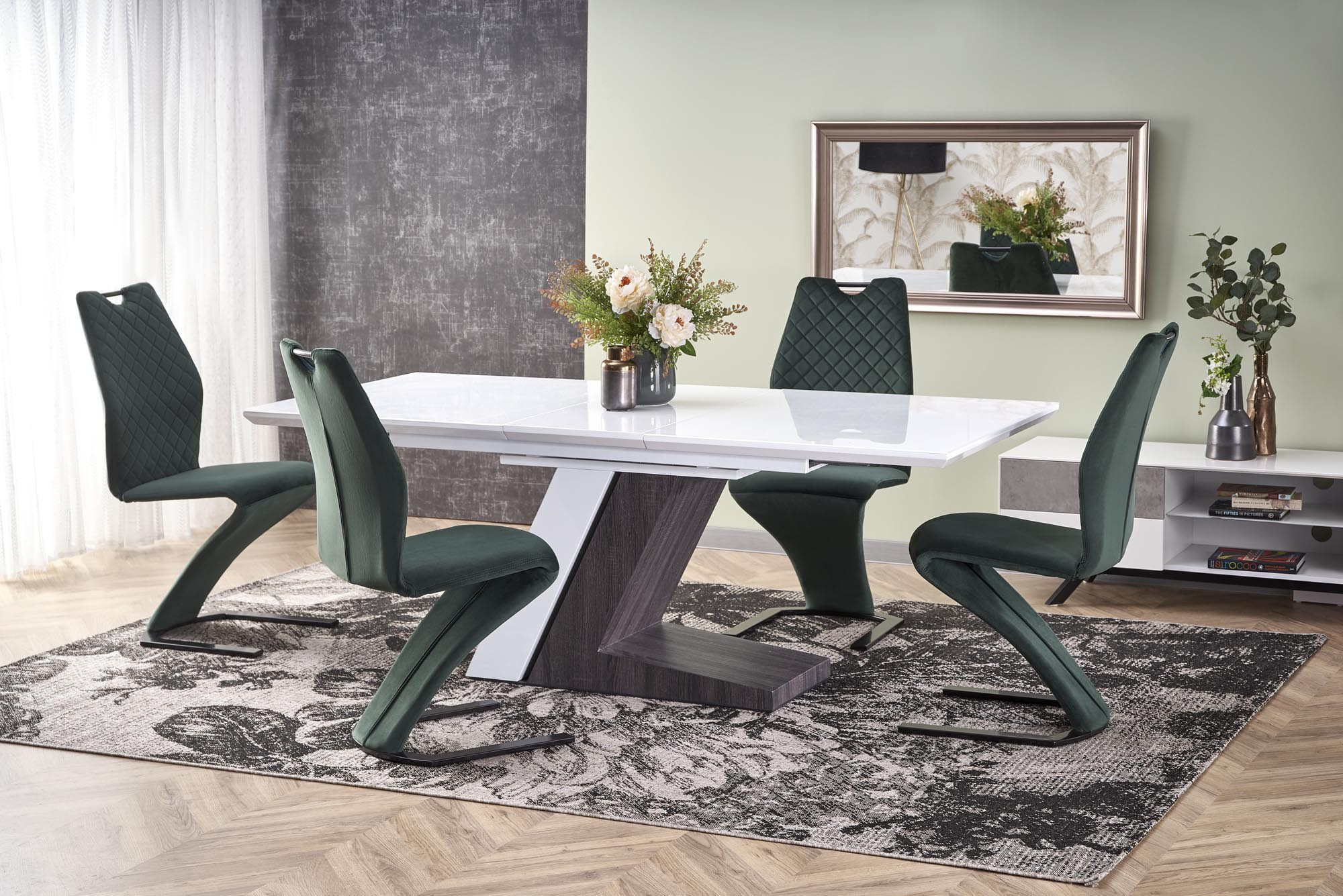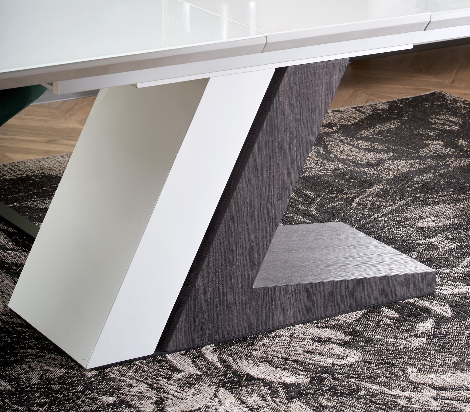 rozkládací stůl, rozměry: 160-200/90/76 cm, materiál: MDF lakovaná / MDF dýhovaná, barva: bílá - tmavě šedá