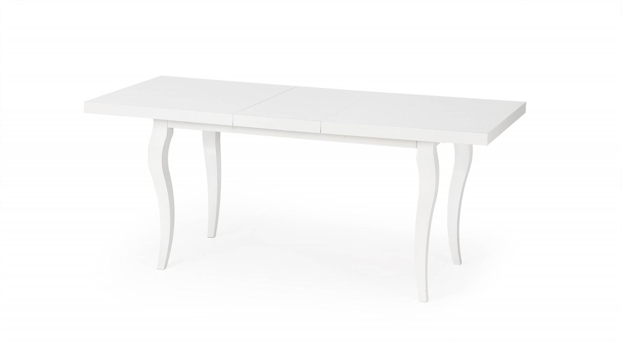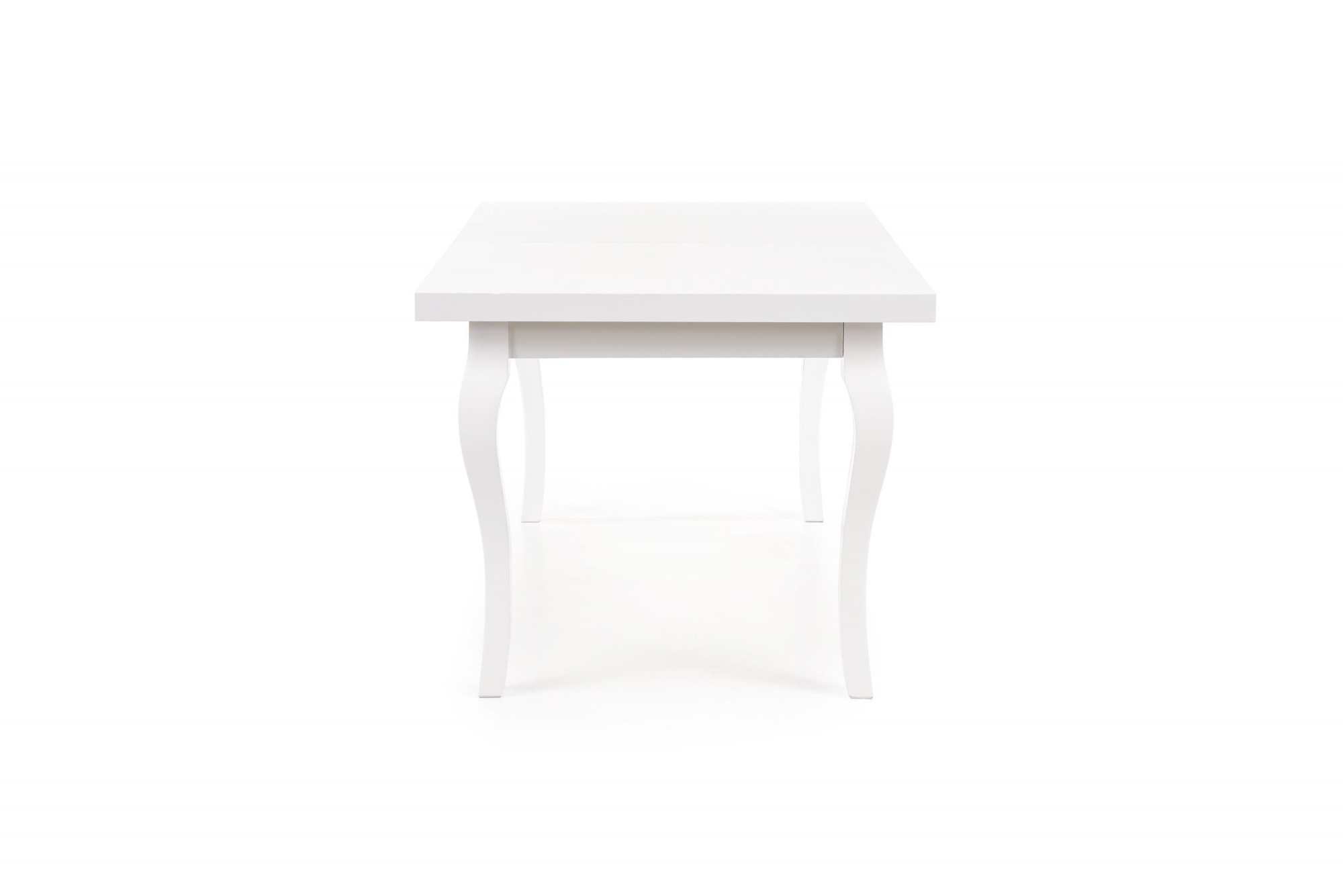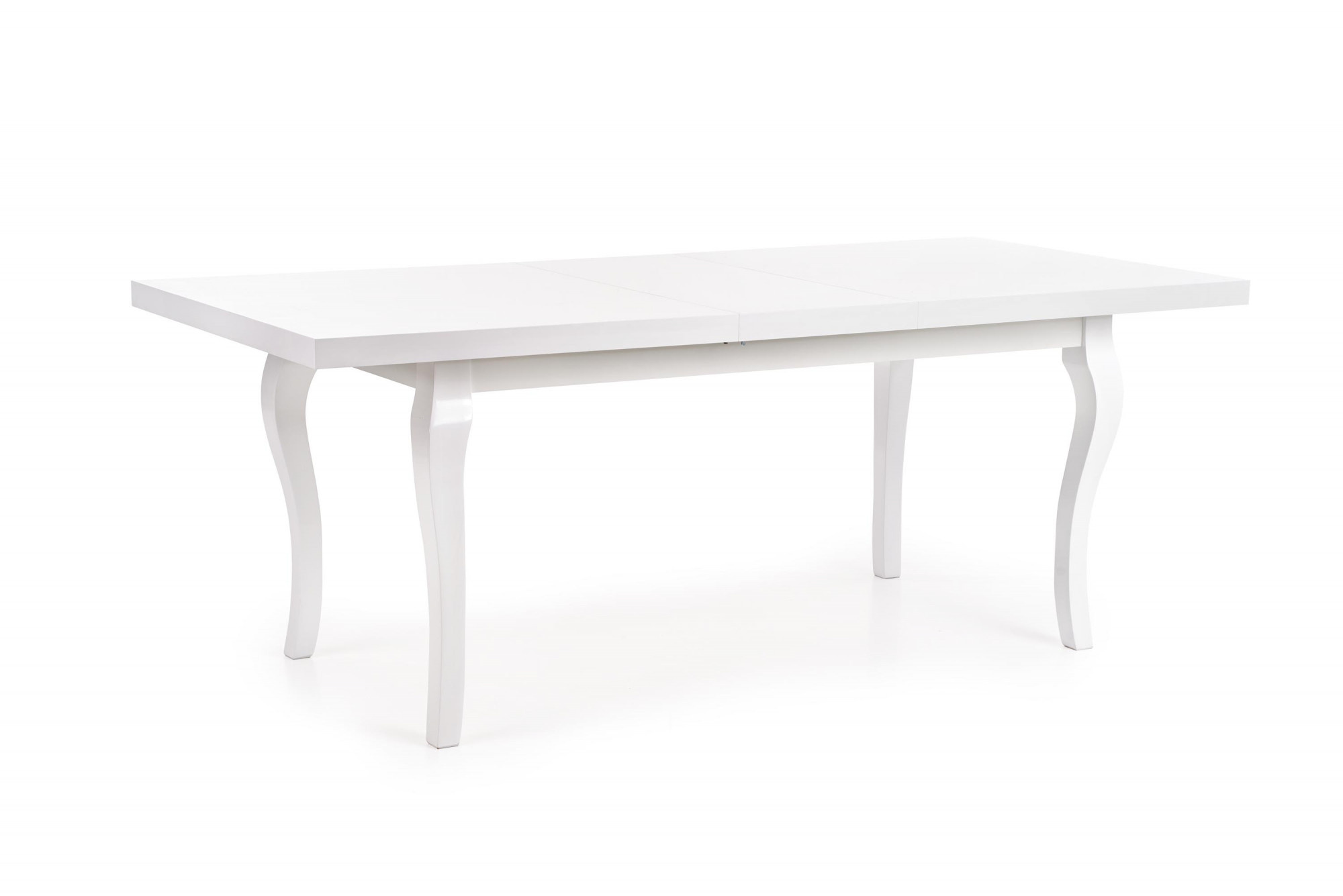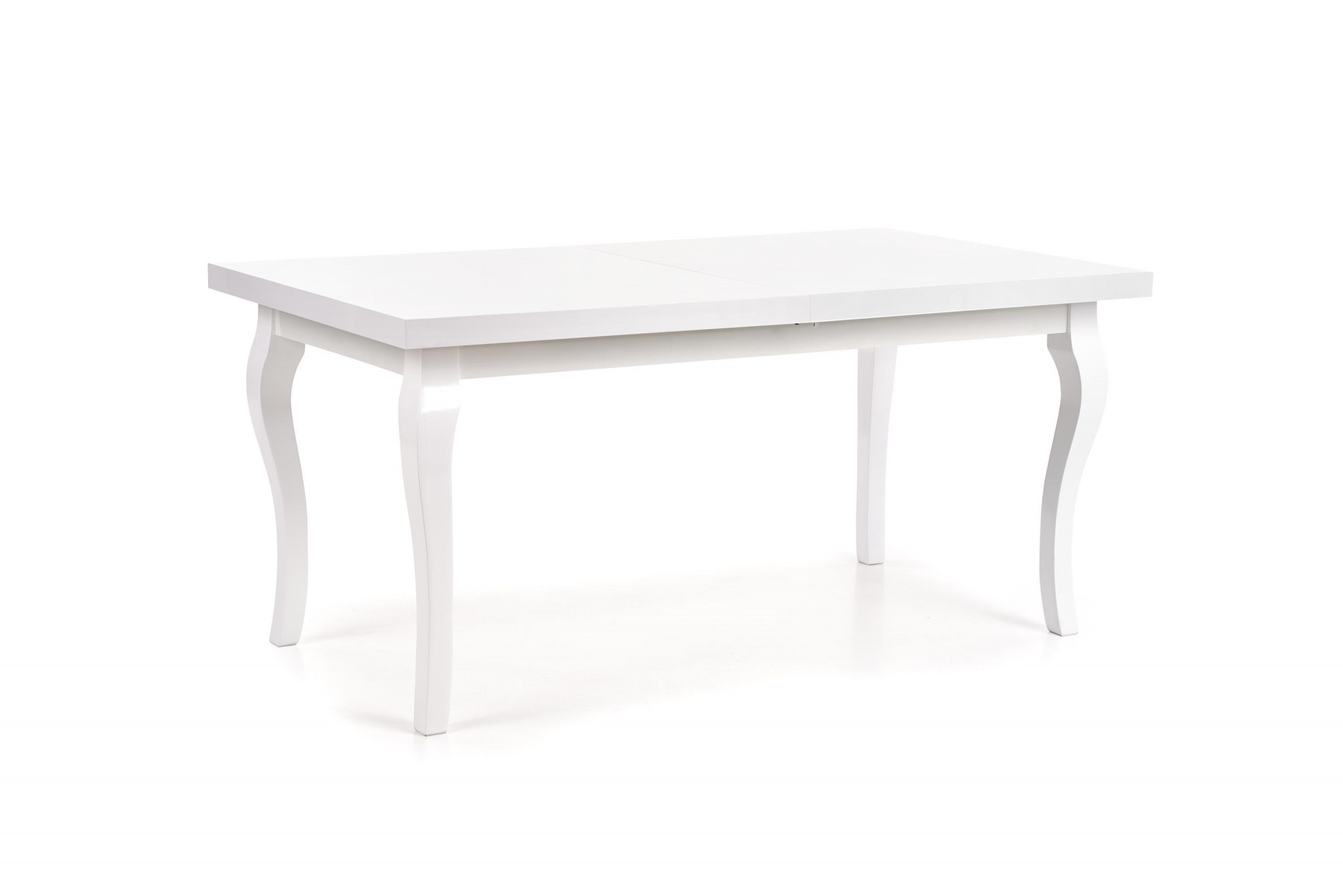 rozkládací stůl, rozměry: 160-240/90/75 cm, materiál: deska - MDF laminovaná deska + ABS hrany, nohy - masivní dřevo (buk), barva: bílá