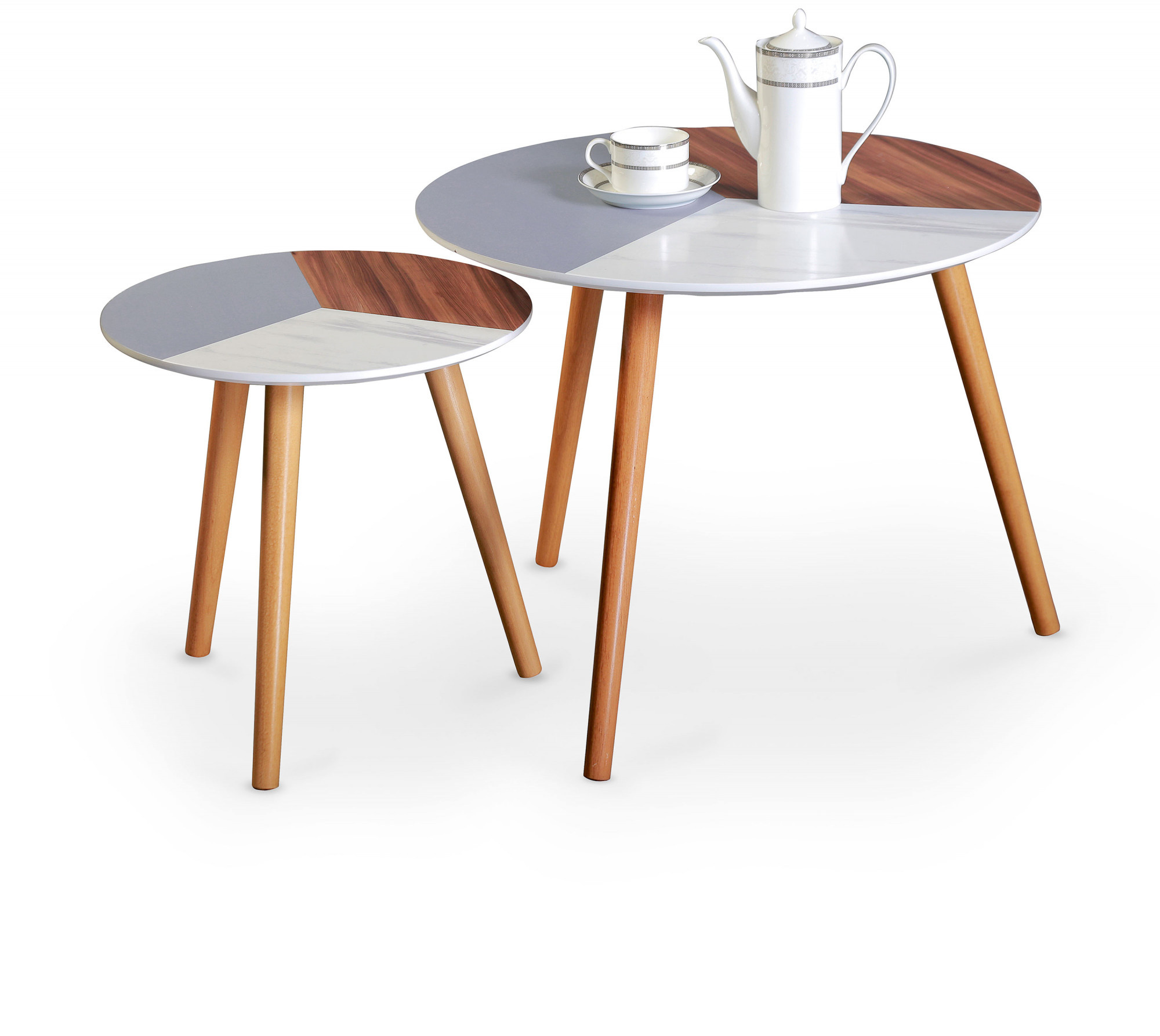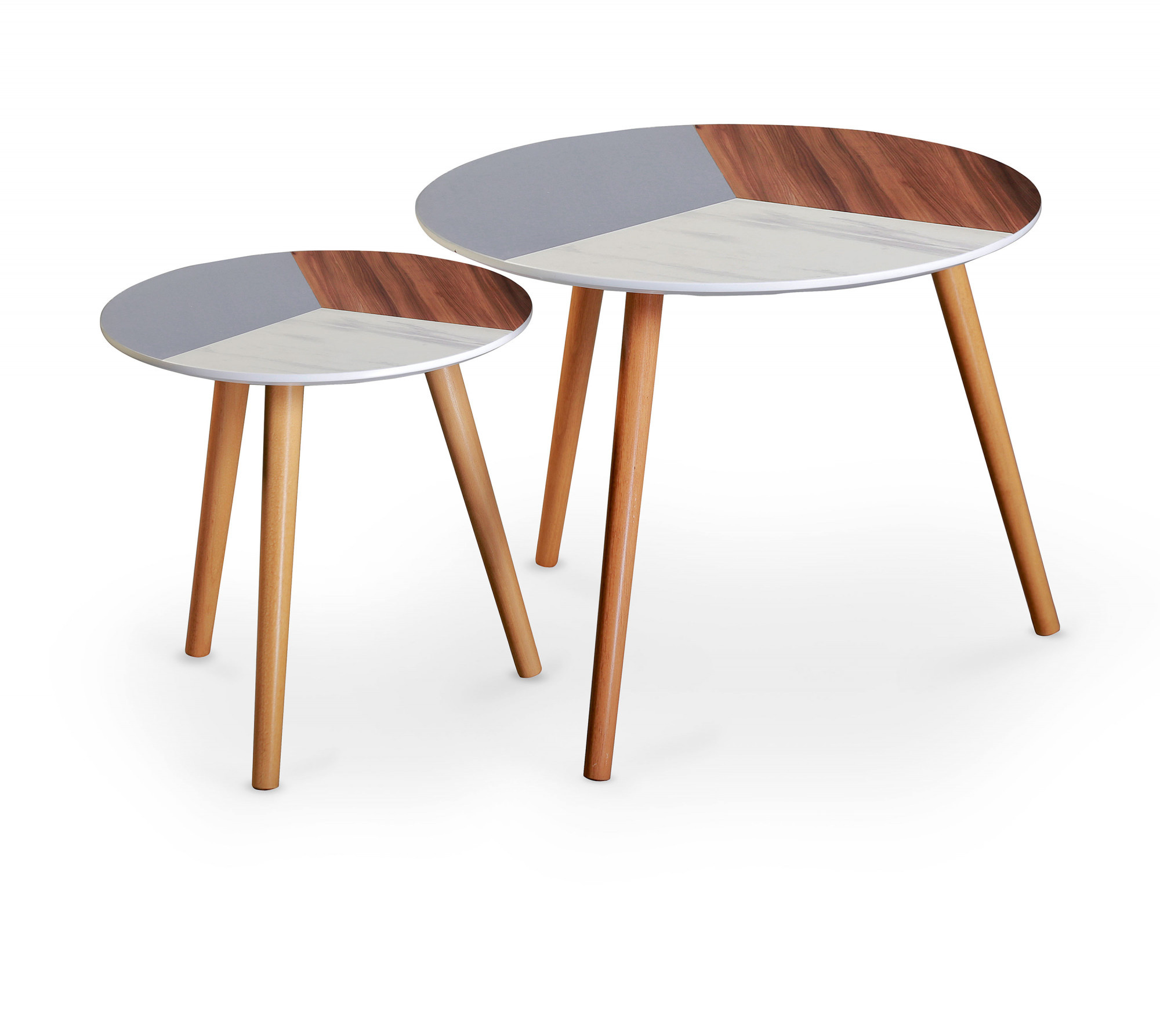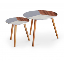 Rozměry: velká - O60/48 cm, malá - O40/40 cm, sada dvou lavic, materiál: MDF laminovaná / masivní dřevo - guma, barva: vícebarevná