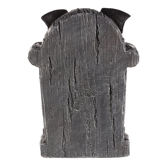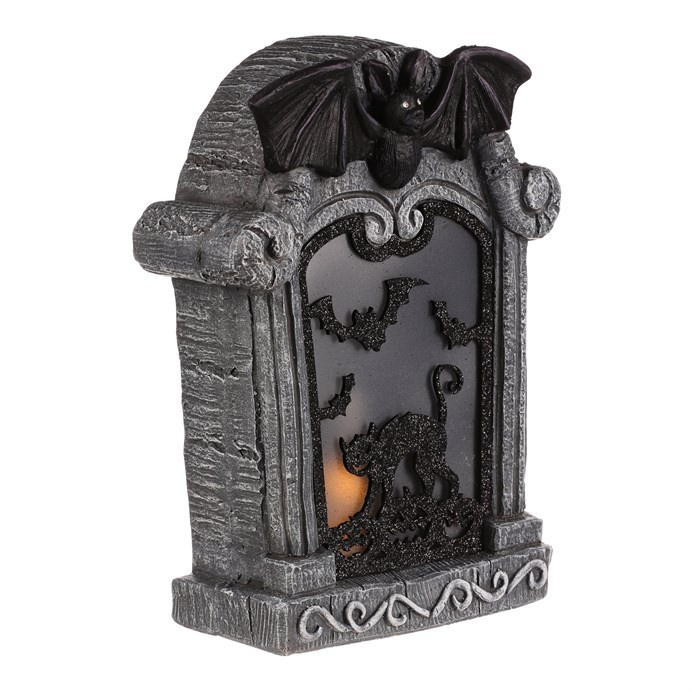 Náhrobek z magnesia s LED osvětlením je dokonalou dekorací pro vytvoření tajemné podzimní atmosféry a oslavy svátku Halloween. Tmavě šedý povrch zdobí netopýři a silueta černé kočky, což mu dodává až strašidelný vzhled. Ideální pro podzimní večery, kdy chcete svůj prostor zahalit do tajuplné atmosféry, umocněné typickým sychravým počasím v tomto ročním období.
