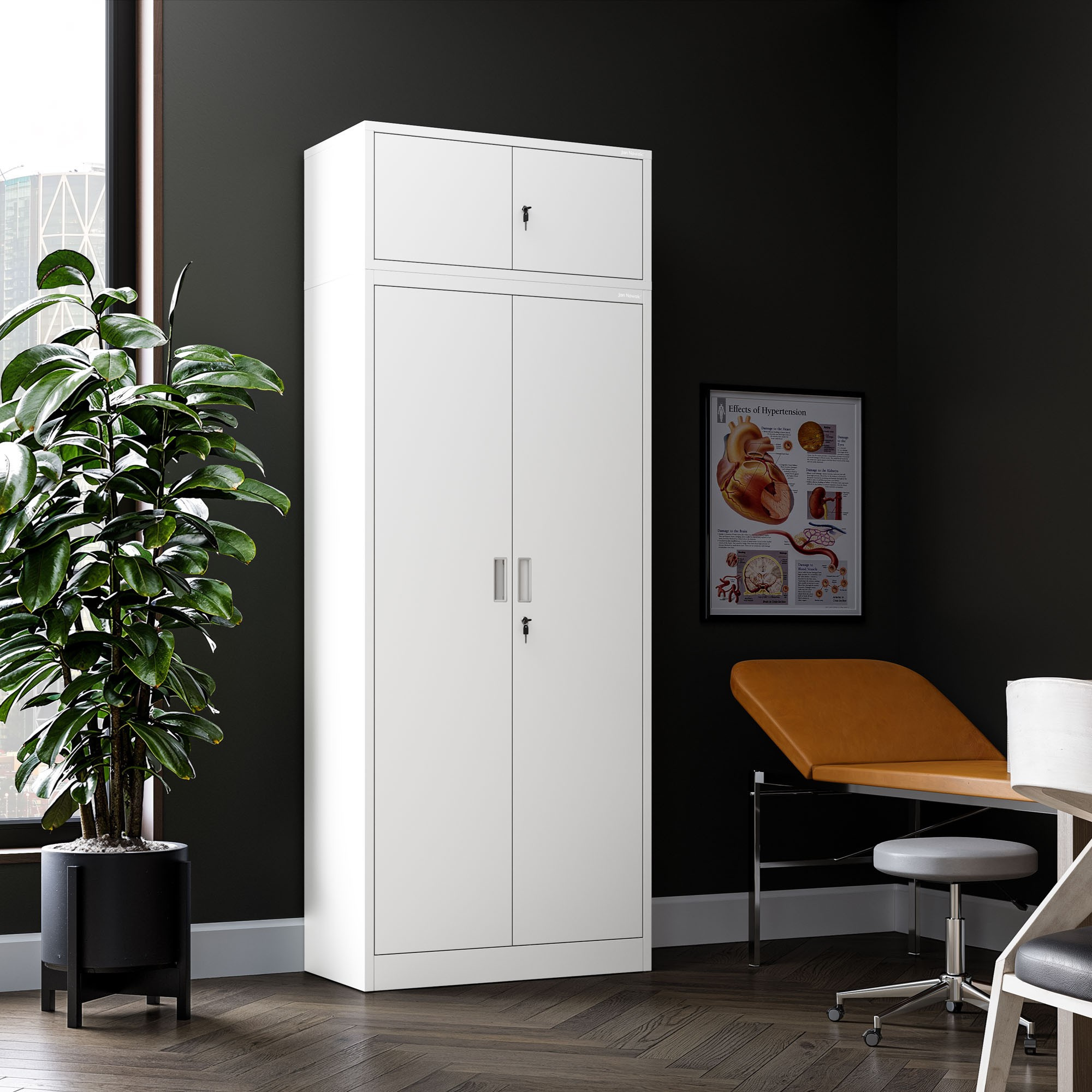#html-body [data-pb-style=TVDM68E]{display:none}#html-body [data-pb-style=BVBROGT]{justify-content:flex-start;display:flex;flex-direction:column;background-position:left top;background-size:cover;background-repeat:no-repeat;background-attachment:scroll}#html-body [data-pb-style=MNVSRVJ],#html-body [data-pb-style=PS2VS36],#html-body [data-pb-style=Q94HKQY],#html-body [data-pb-style=RRYR2YQ],#html-body [data-pb-style=UJT5V9D]{justify-content:flex-start;display:flex;flex-direction:column;background-position:left top;background-size:cover;background-repeat:no-repeat;background-attachment:scroll;margin-bottom:30px}#html-body [data-pb-style=MNVSRVJ],#html-body [data-pb-style=PS2VS36],#html-body [data-pb-style=Q94HKQY],#html-body [data-pb-style=UJT5V9D]{margin-bottom:10px}#html-body [data-pb-style=PS2VS36],#html-body [data-pb-style=Q94HKQY],#html-body [data-pb-style=UJT5V9D]{margin-bottom:40px}#html-body [data-pb-style=E173X03],#html-body [data-pb-style=E3UV1ML],#html-body [data-pb-style=I7863EE],#html-body [data-pb-style=NUCAXSP]{background-position:left top;background-size:cover;background-repeat:no-repeat;background-attachment:scroll;align-self:stretch}#html-body [data-pb-style=AKX462Y]{margin-top:40px;margin-bottom:40px}#html-body [data-pb-style=DTLWXQK],#html-body [data-pb-style=ECOMLV4],#html-body [data-pb-style=NYRFH88],#html-body [data-pb-style=X7K8CEX]{display:flex;width:100%}#html-body [data-pb-style=PGHBAS5],#html-body [data-pb-style=QLVV39M],#html-body [data-pb-style=TENCPLR]{justify-content:flex-start;display:flex;flex-direction:column;background-position:left top;background-size:cover;background-repeat:no-repeat;background-attachment:scroll;width:8.33333%;align-self:stretch}#html-body [data-pb-style=QLVV39M],#html-body [data-pb-style=TENCPLR]{width:41.Vlastnosti modulárního nástavce: Odolná kovová konstrukce Skrytý montážní systém pro větší estetiku Uzamykatelný Klíčový Odolný a prostorný Kompatibilní se skříní JAN Compact Bílá barva Modulární nástavec EWA Compact – více místa bez zabírání podlahy EWA Compact je praktický nástavec montovaný na skříni, vytvořený pro osoby, které potřebují dodatečný úložný prostor, ale nemohou si dovolit zabrat větší plochu. Modulární konstrukce se dokonale spojuje se skříní JAN Compact, vytvářejíc soudržný a funkční celek. Kovový nástavec se osvědčí zejména v úzkých nebo malých místnostech, kde záleží na každém centimetru volného místa.Trvanlivost a preciznost provedení Nástavec v bílé barvě byl vyroben z válcované oceli o tloušťce 0,6 mm, což zajišťuje jeho nízkou hmotnost při zachování vysoké pevnosti. Povlak lakovaný práškovou barvou tvoří trvanlivou vrstvu odolnou proti poškrábání a korozi. Estetický vzhled je také výsledkem precizního CNC ohýbání, které eliminuje potřebu svařování a dodává konstrukci moderní povrchovou úpravu. Model EWA Compact si zachovává svůj vzhled a funkčnost i při intenzivním dlouholetém používání.Prostorný a uzamykatelný kovový nástavec nabízí spoustu místa pro uložení méně často používaných předmětů – dokumentů, šanonů a pracovního oblečení. To ideální řešení, když je potřeba další, ale bezpečné místo. Model EWA Compact je vybaven solidním zámkem na klíč, což účinně chrání obsah před přístupem neoprávněných osob a zvyšuje úroveň bezpečnosti v místnosti.Ideální doplněk ke skříni JAN Compact Nástavec EWA Compact byl navržen s ohledem na plnou kompatibilitu se skříní JAN Compact, čímž společně tvoří funkční úložný set bez nutnosti zabírat další podlahovou plochu. Díky použití skrytého systému upevnění typu „drop on” s čepy je spojení obou prvků stabilní a diskrétní, což umožňuje zachovat estetiku místnosti.