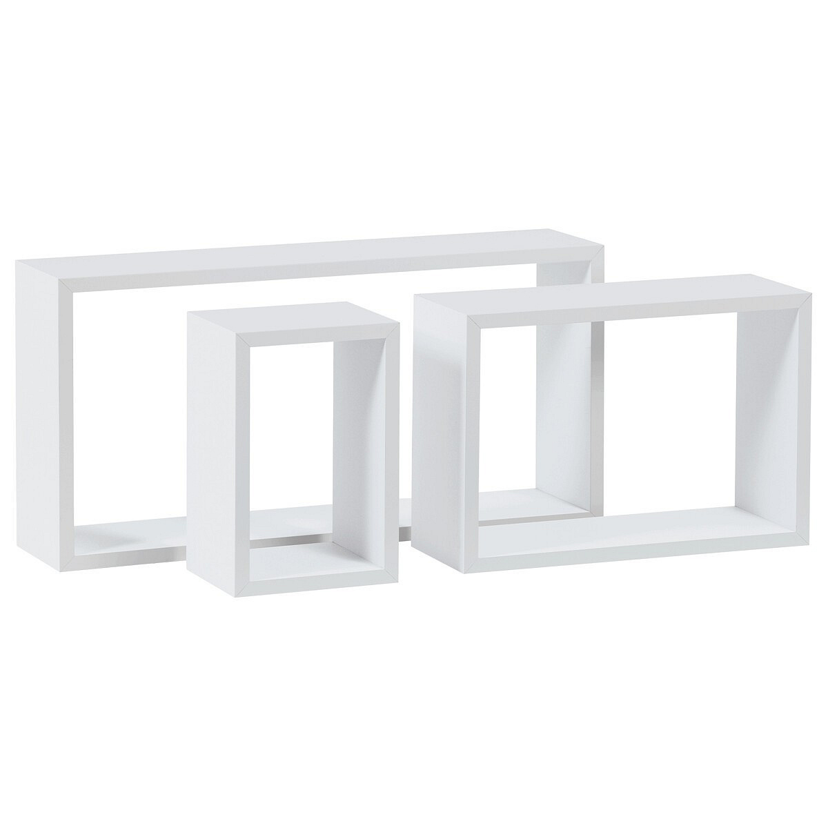 Sada tří nástěnných polic v matném bílém provedení je vyrobena z MDF materiálu, který zajišťuje pevnost a stabilitu. Jednoduchý a čistý design umožňuje variabilní uspořádání na stěně podle potřeby a stylu interiéru. Poličky jsou vhodné pro vystavení drobných dekorací, knih či praktických předmětů, přičemž jejich povrch se snadno udržuje. Díky různým rozměrům jednotlivých kusů lze vytvořit zajímavé kompozice, které prostor opticky oživí. Balení obsahuje ochrannou fólii pro bezpečnou manipulaci a přepravu.
