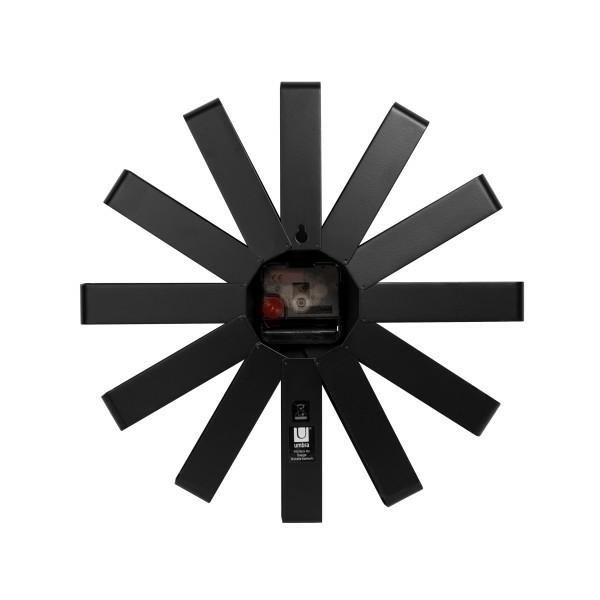 Neobvyklý tvar nástěnných hodin Ribon zajišťuje, že přitahují pozornost. Hodiny byly vyrobeny z kovu v černé barvě. Ohýbaný kov ve formě stuhy vytváří krásný tvar. Zajímavá alternativa k hodinám se standardními číslicemi na ciferníku. Hmotnost: 1 kg, Vysoce kvalitní nástěnné hodiny Ribon se vyznačují přesným mechanismem. Tento hodinový stroj využívá baterii AA 1,5V, která není součástí balení.