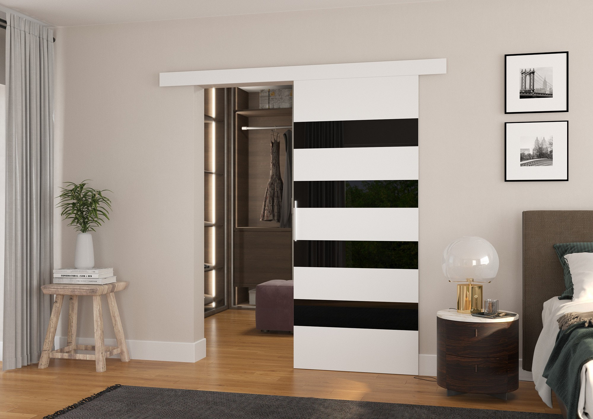 Posuvné dveře na stěnu MILOU 86 White+Black Lacobel