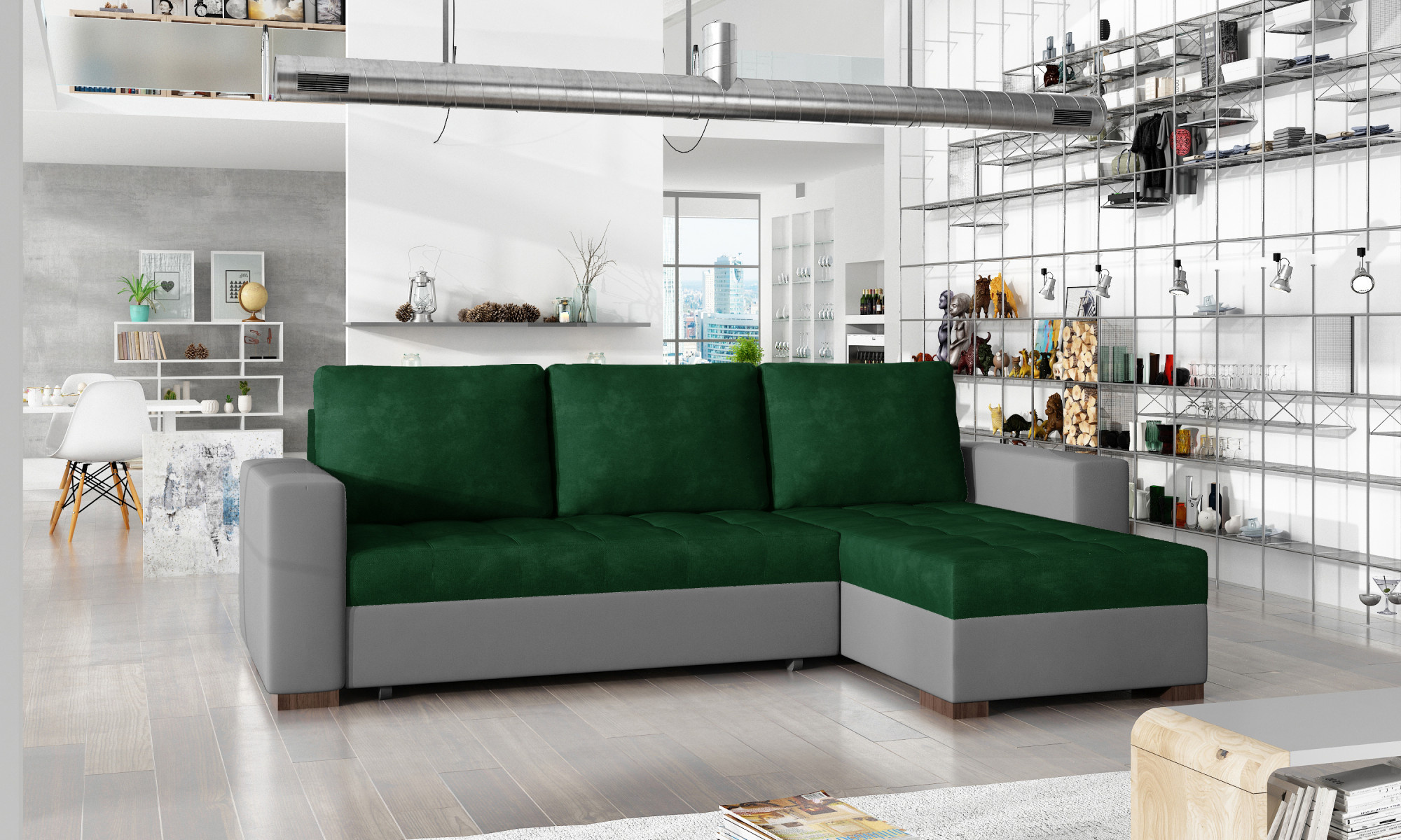 Newark je elegantní, klasická a minimalistická rohová pohovka s rozměry 237 x 150 x 90 cm, která se dokonale hodí do jakéhokoli interiéru bez ohledu na jeho velikost. Sedák našeho nábytku je vyplněn bonell pružinami a pěnou T25, což zajišťuje maximální pohodlí při každodenním používání. Další výhodou nábytku je jeho přizpůsobení pro funkci spaní a dva úložné prostory na ložní prádlo. Po rozložení nábytku pomocí DL automatu získáme postel s rozměry 195 x 125 cm. Mezi jeho charakteristické rysy můžeme zahrnout: čalouněné opěradlo, prostorné polštáře a prošívání na sedácích.