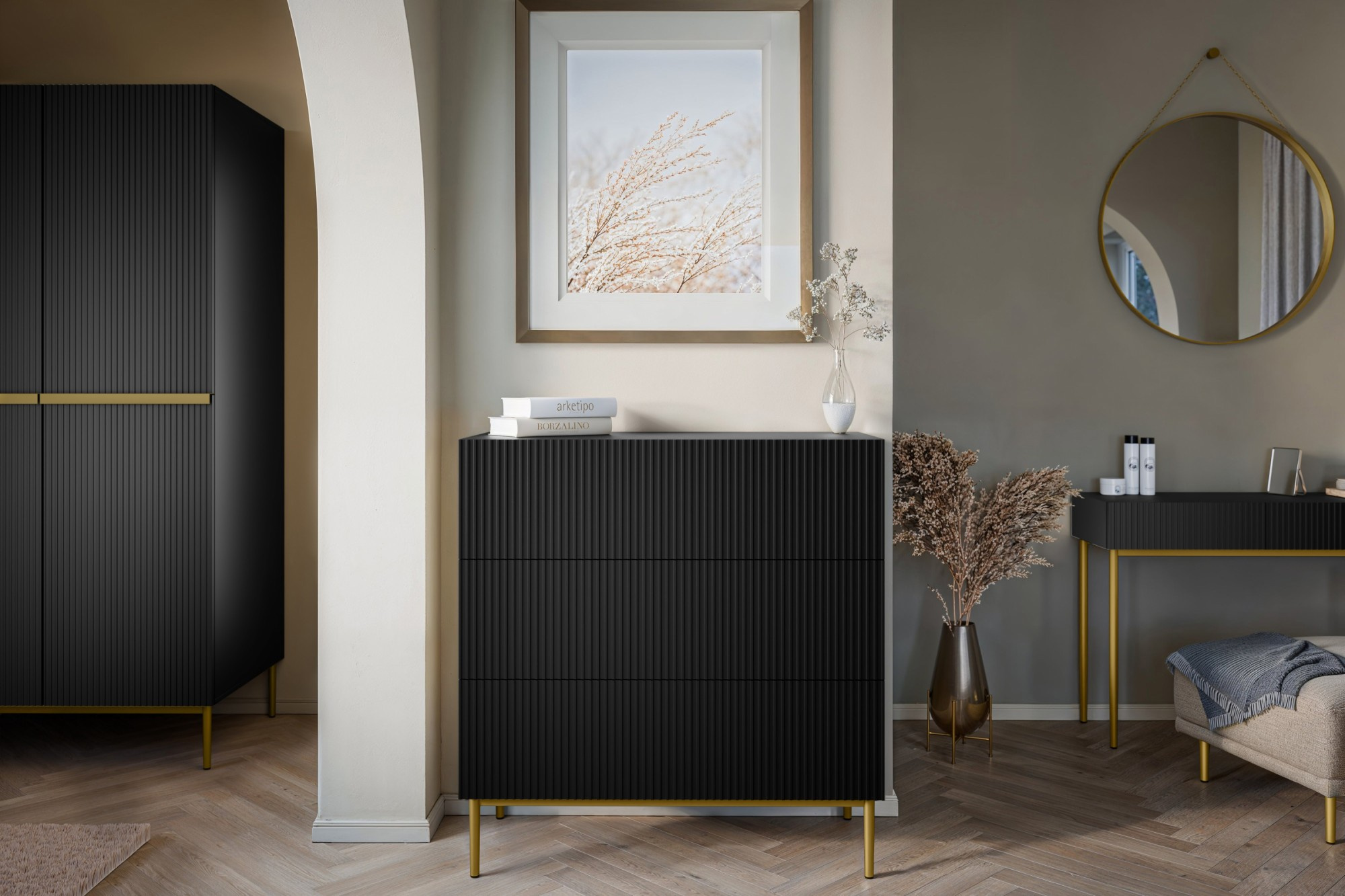 NICOLE KOMODA 100 3SZ - černý mat / zlatý rám