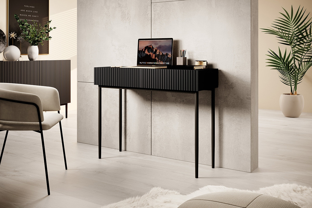 Moderní Toaletní stolek Nicole - Černý mat / černé nohy, šířka: 100, výška: 82, hloubka: 41.