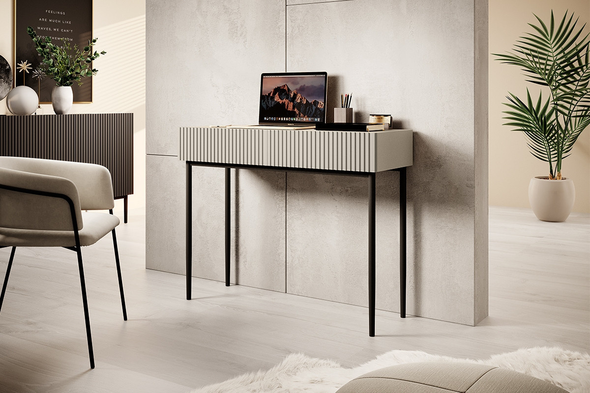 Moderní toaletní stolek Nicole - kašmír/ černé nohy, šířka: 100, výška: 82, hloubka: 41.