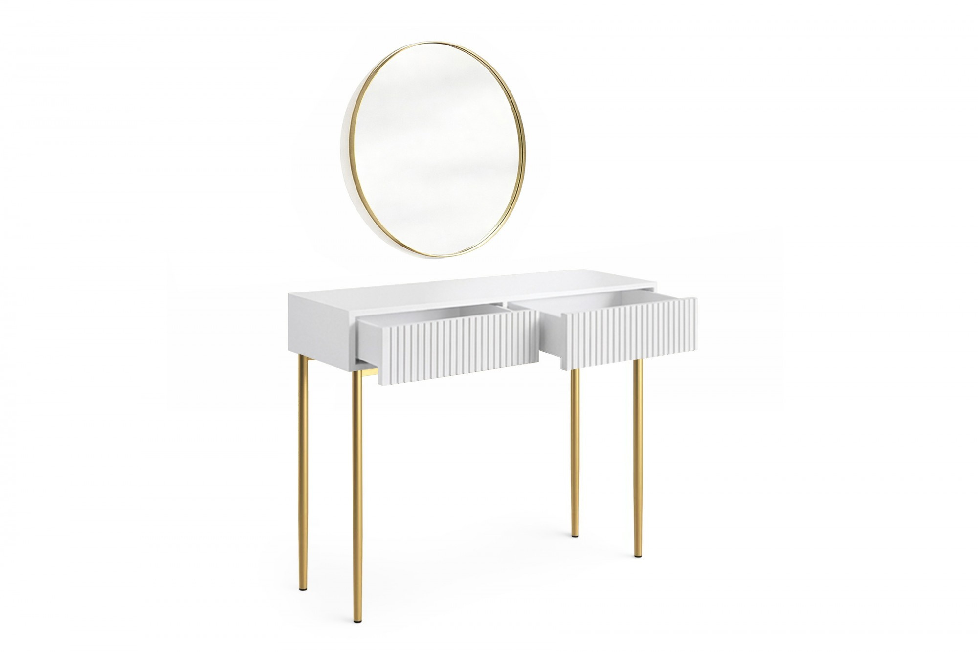 NICOLE TOALETKA 100 2SZ - bílý mat / zlatý rám + NICOLE ZRCADLO 60 - zlatý