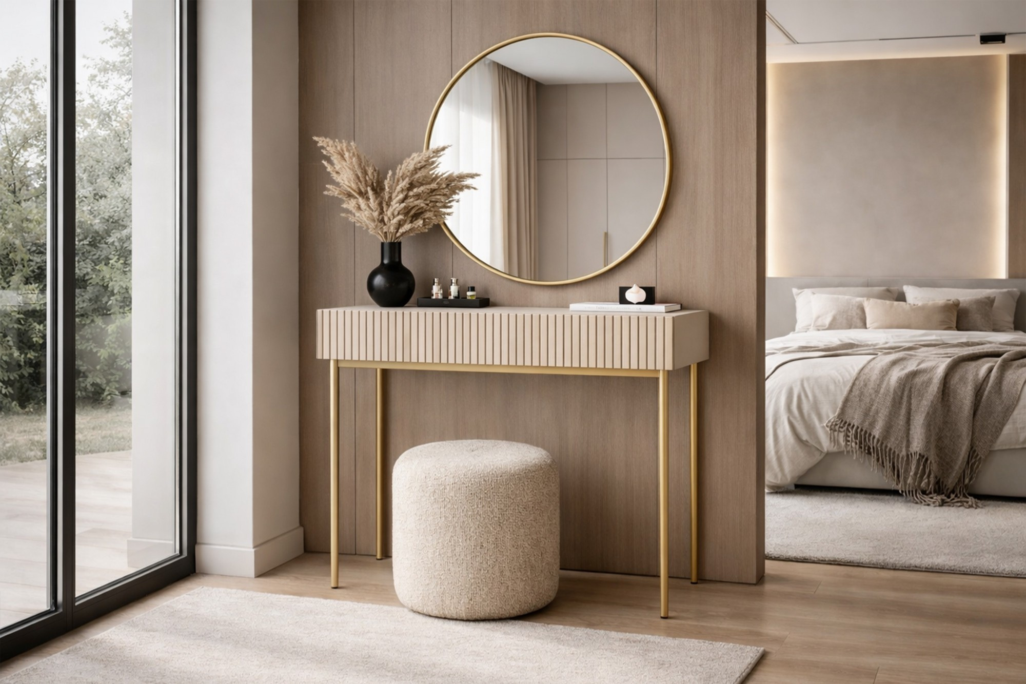 NICOLE TOALETKA 100 2SZ - kašmír / zlatý rám + NICOLE ZRCADLO 80 - zlaté