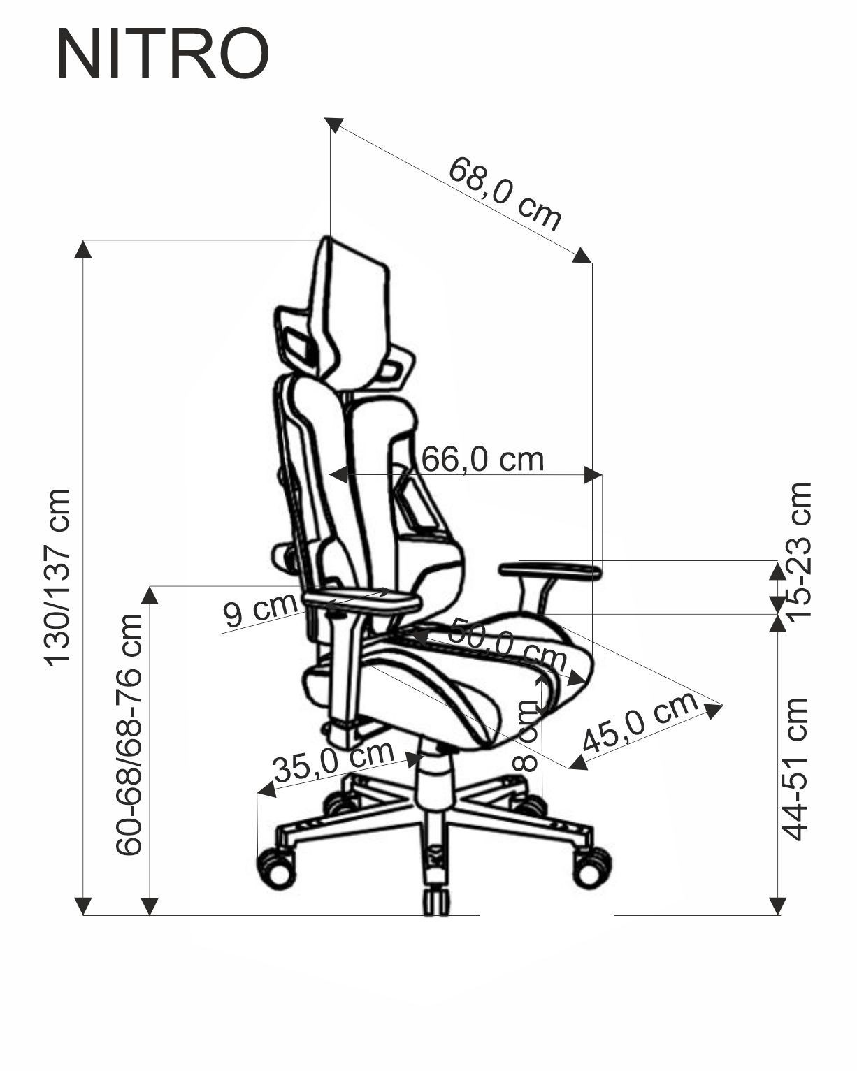 | Výška sedu - nastavitelná v cm | 44-51 |
