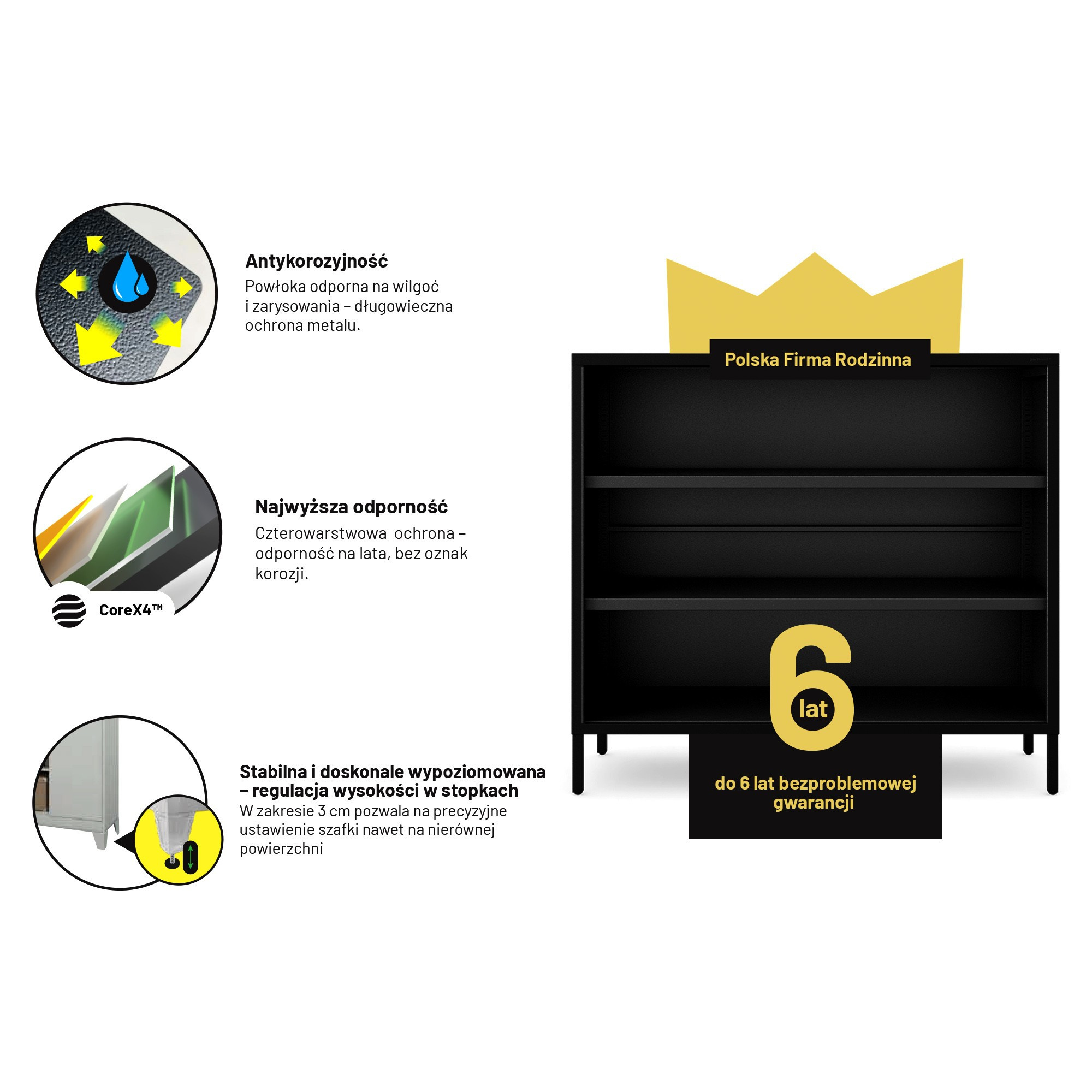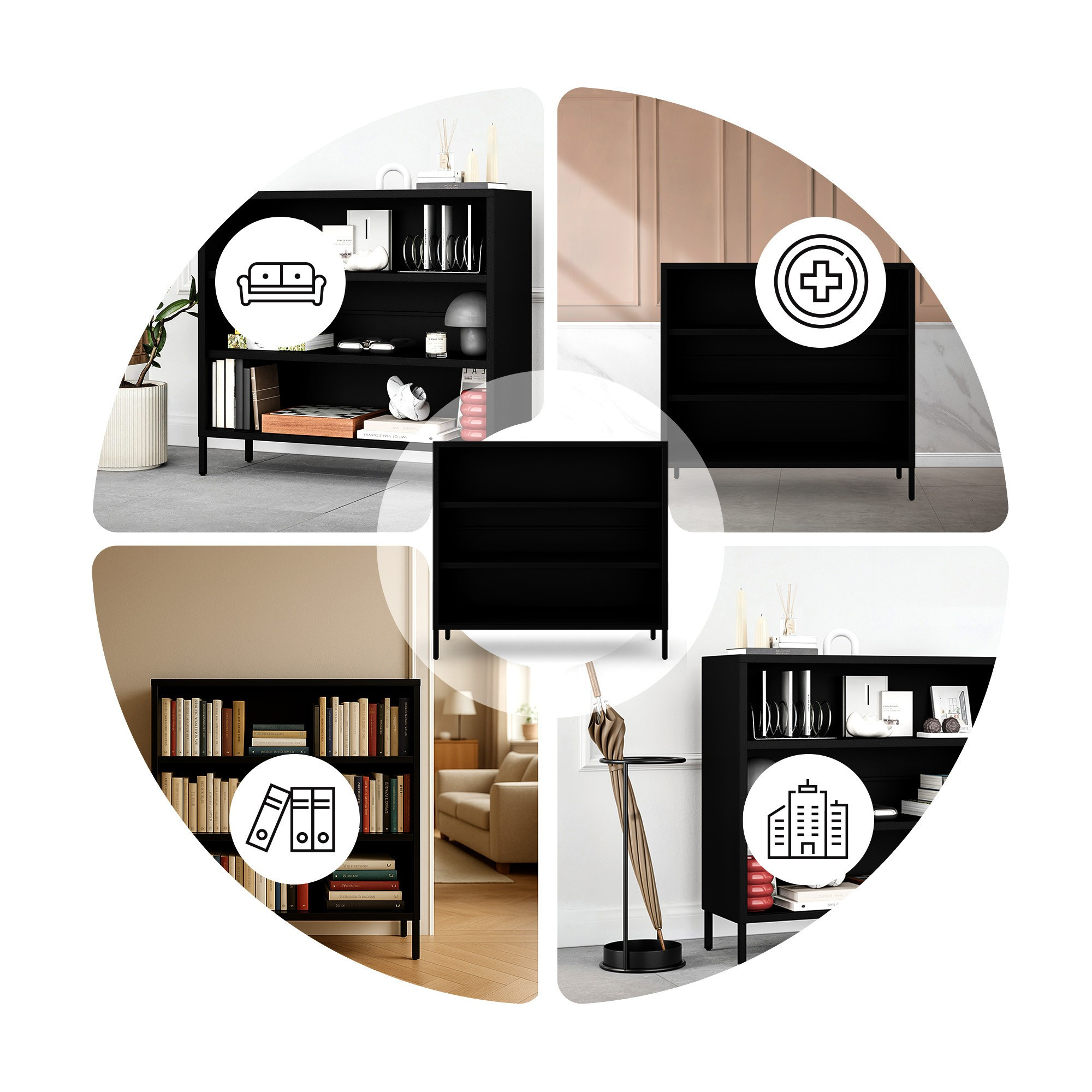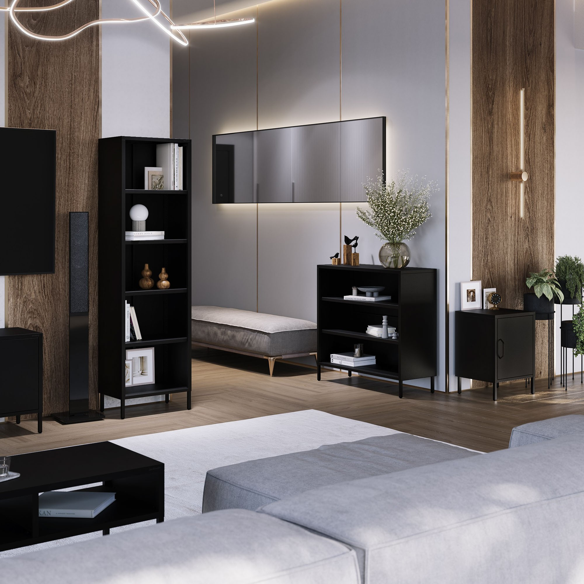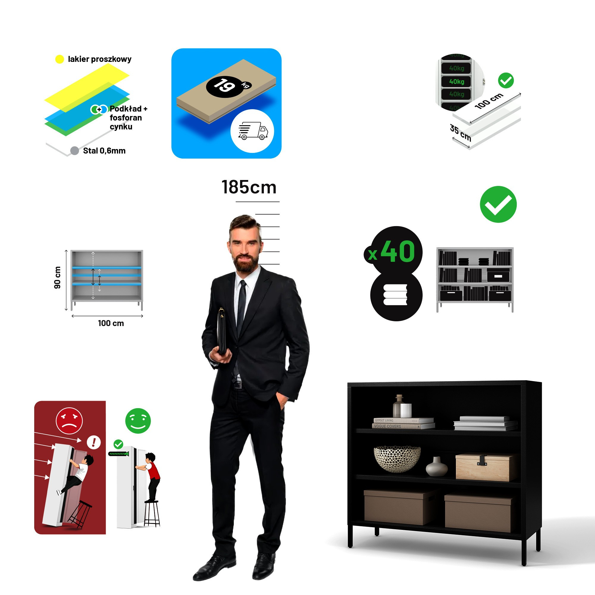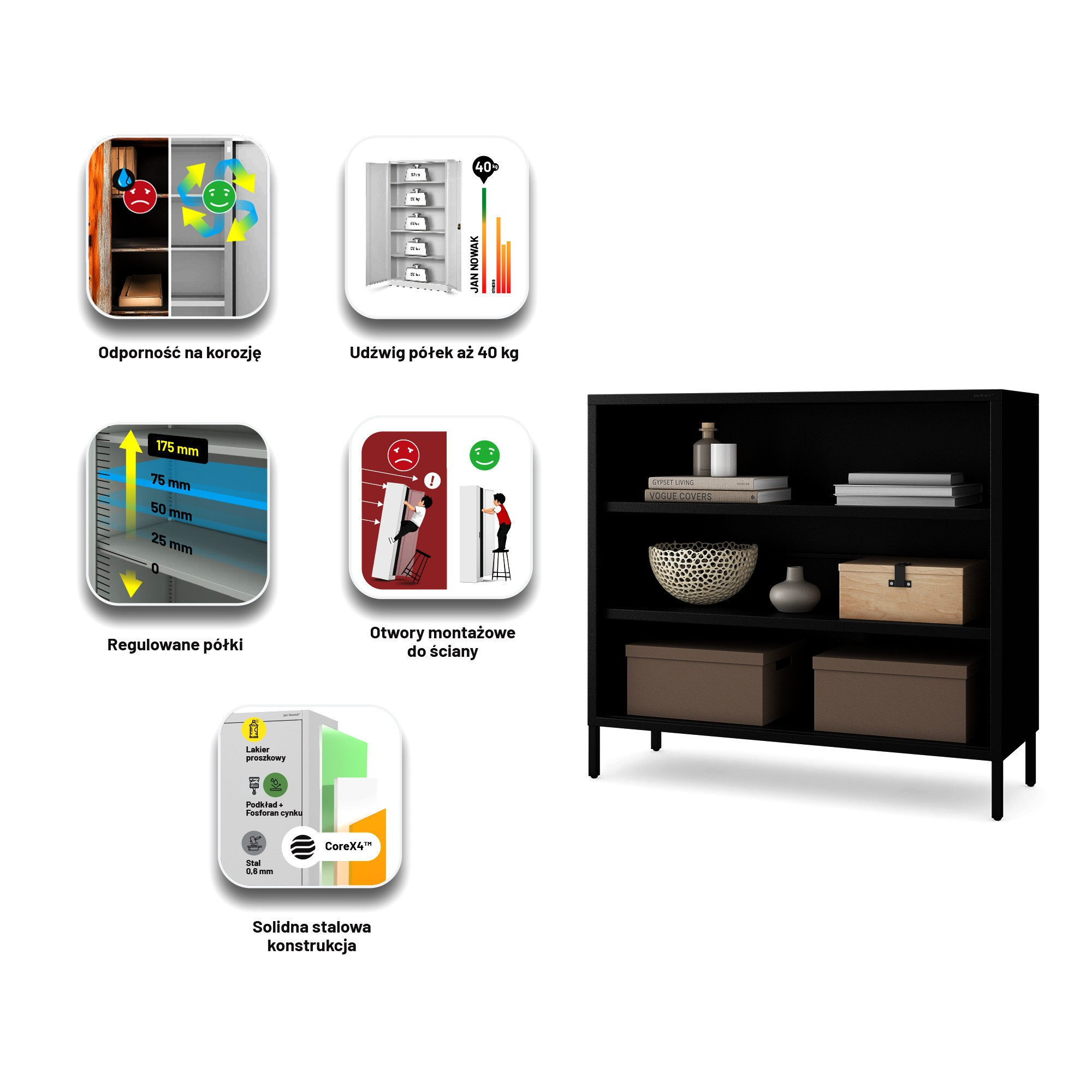 Nízký kovový regál černý Modern LUCA 1000 x 900 x 350 mm