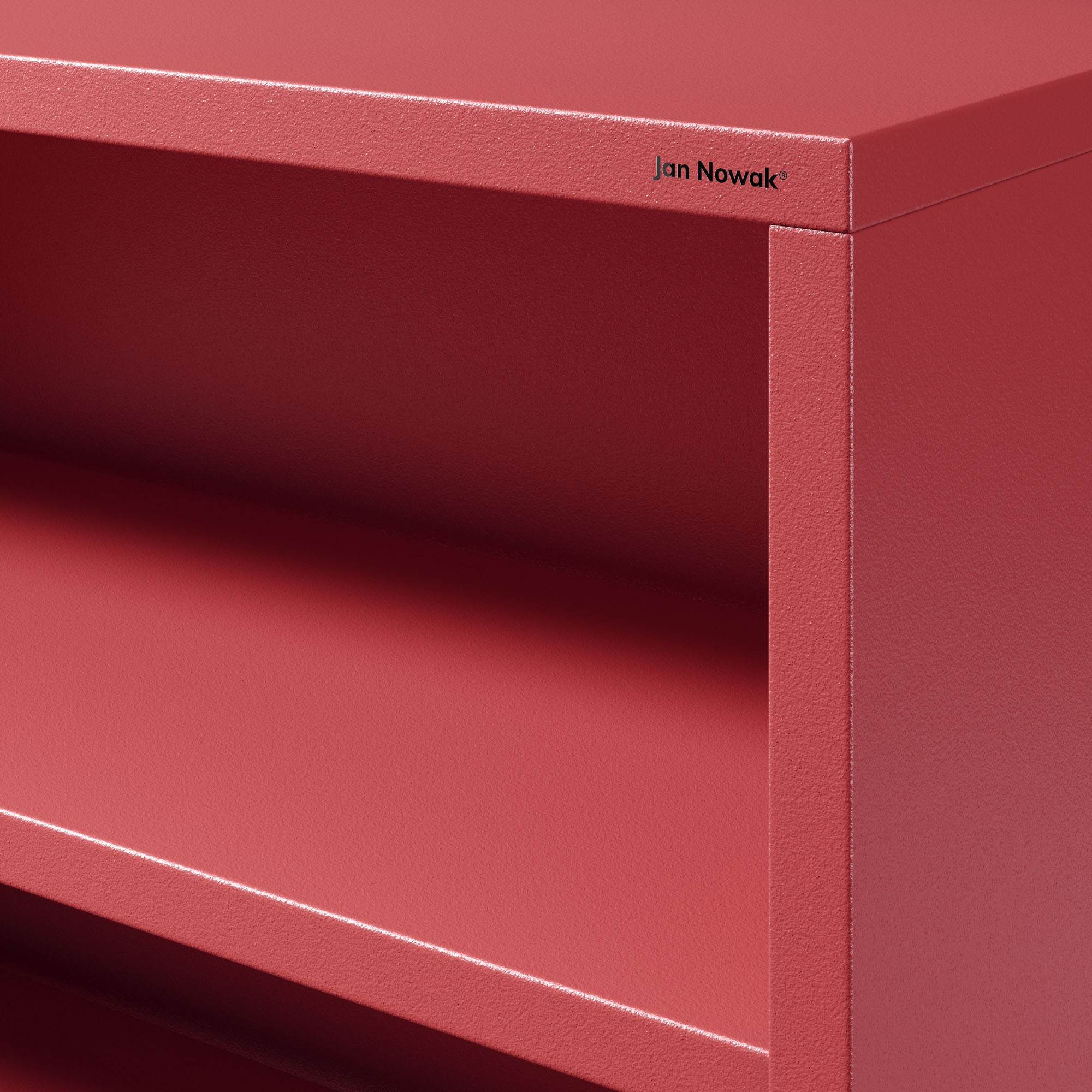 Nízký kovový regál červený Moderní LUCA, 1000 x 900 x 350 mm