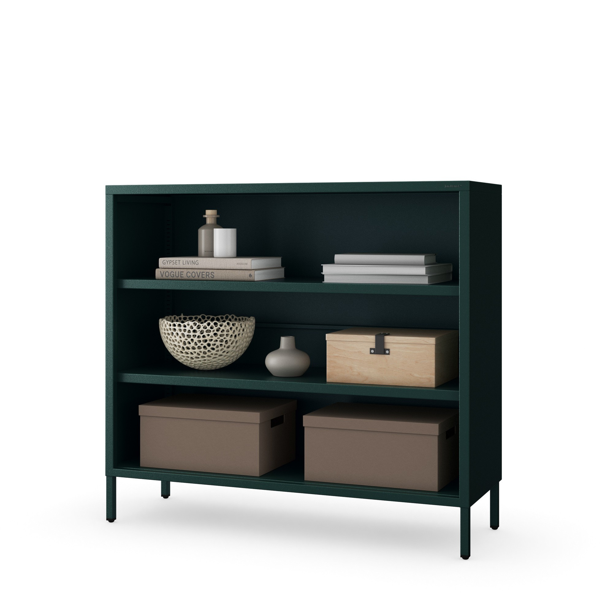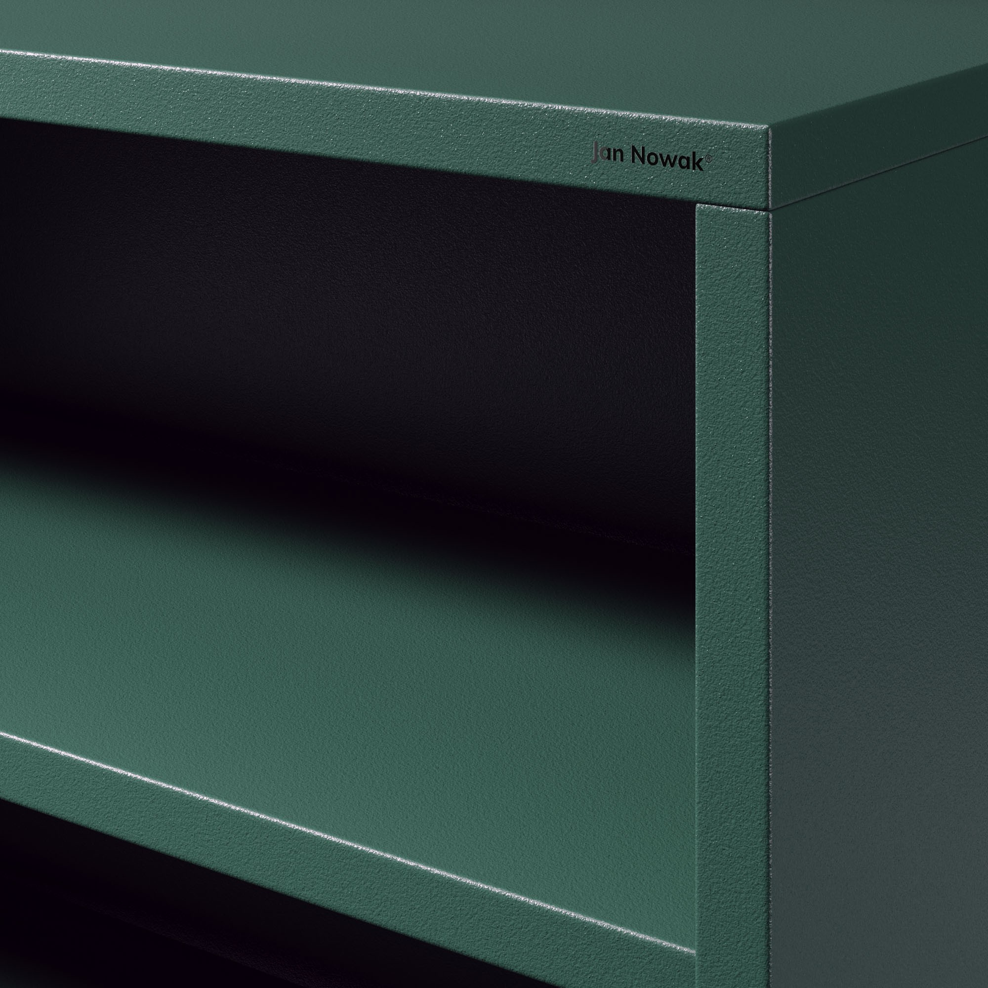 Nízký kovový regál lahvově zelený Moderní LUCA, 1000 x 900 x 350 mm