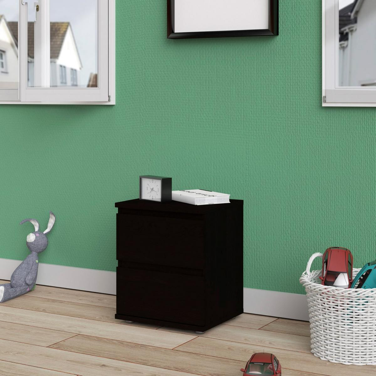 Noční stolek je nezbytným vybavením každé ložnice, dětského nebo studentského pokoje i pokoje pro hosty. Je nepostradatelným společníkem u postele a poskytuje úložný prostor pro vše, co potřebujete mít na dosah ruky a také odkládací prostor např.na lampičku nebo budík. Noční stolek Nibby Vaši ložnici krásně doplní a svoji funkci bude plnit na výbornou. Stolek je vyrobený z lamina, které se snadno udžuje. Při výrobě je kladen důraz na ekologii takže je vyráběný v souladu s ohledy na životní prostředí. Stolek je dodávaný v demontu a součástí balení je montážní návod včetně potřebných spojovacích prvků. Vyobrazené dekorace nejsou v ceně.