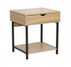ROZMĚRY: - hloubka: 40 cm - šířka: 48 cm - výška: 53 cm MATERIÁL: - deska: laminovaná deska - rám: kov lakovaný práškovou barvou BARVA: - deska: přírodní dub - rám: černý OSTATNÍ: - zásuvka