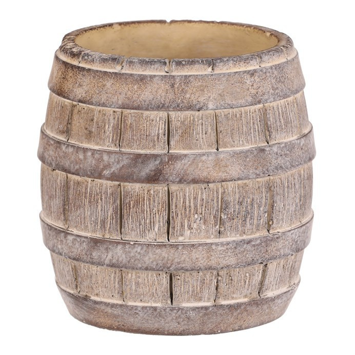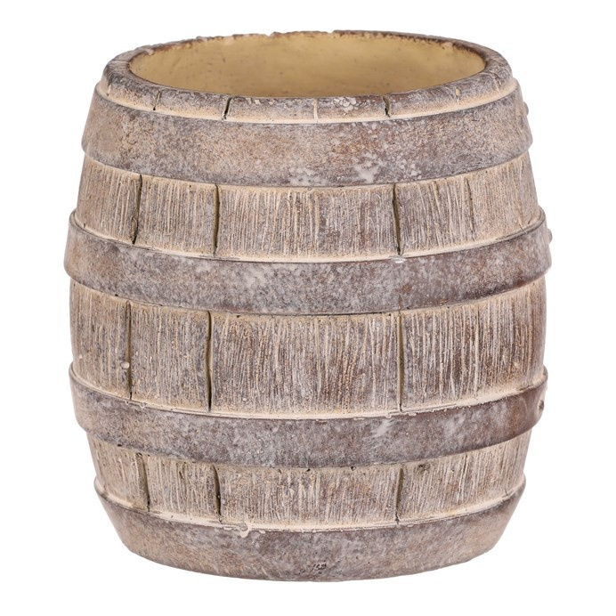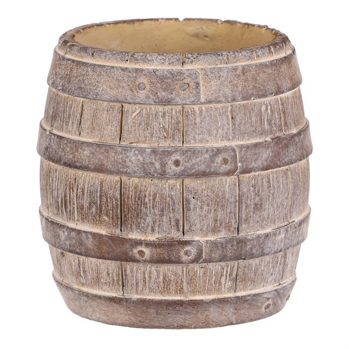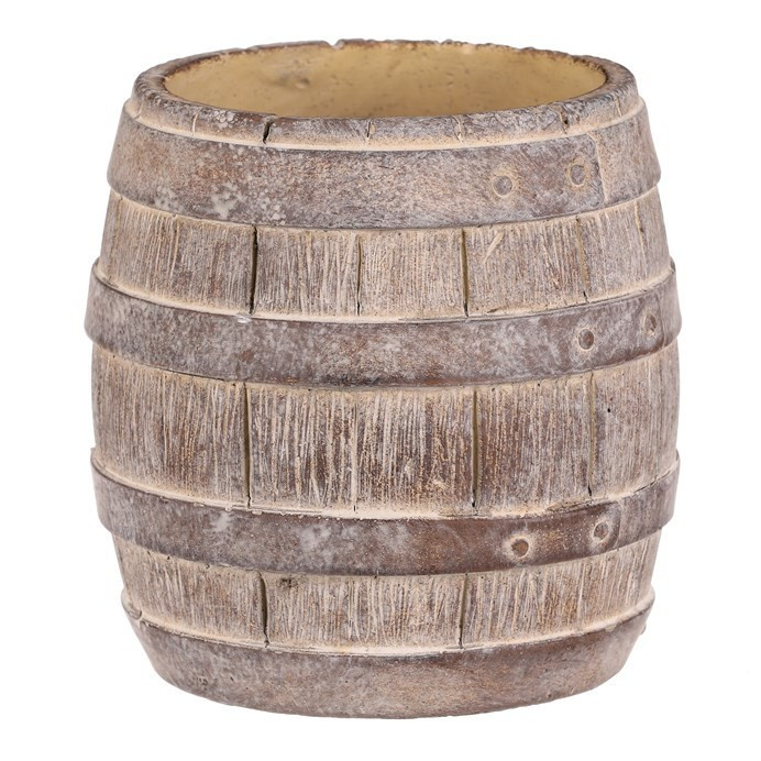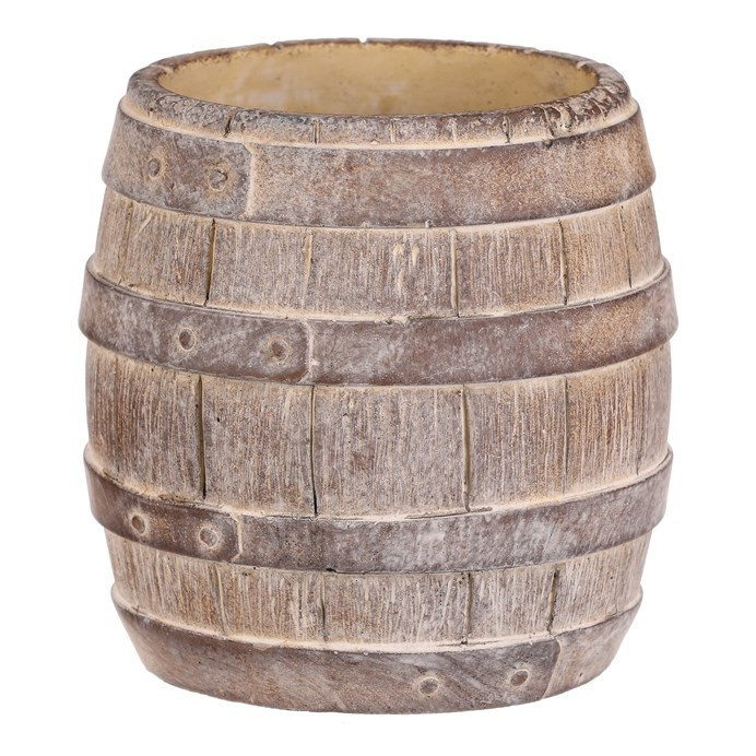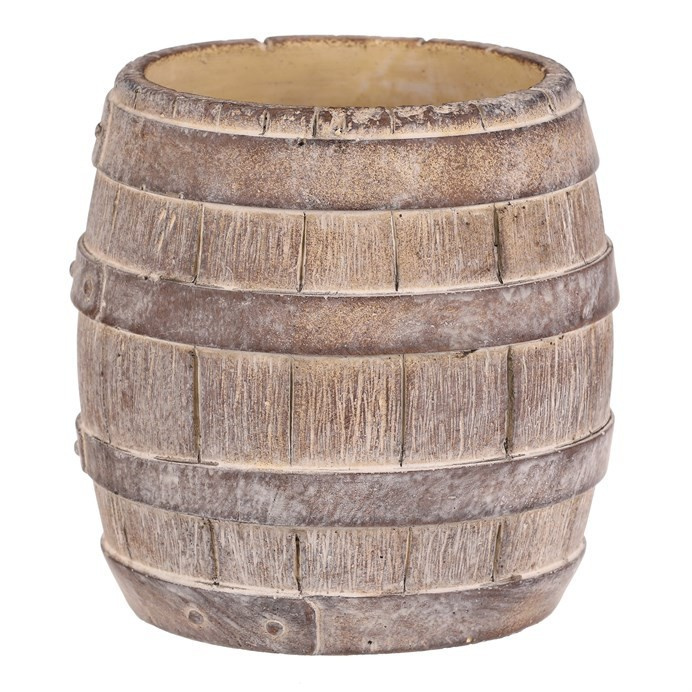 Betonový obal ve tvaru soudku v béžovo-hnědém provedení přináší do prostoru přírodní a robustní vzhled. Povrch s imitací dřevěných prken a kovových pásů vytváří autentický rustikální efekt, který se hodí jak do zahrad, tak i interiérů s industriálním nebo venkovským stylem. Obal je pevný a navržen pro dlouhou životnost, materiál se snadno udržuje a odolává povětrnostním vlivům. Velikost M nabízí dostatečný prostor pro květiny či jiné dekorace, přičemž stabilní základna zajišťuje bezpečné umístění.