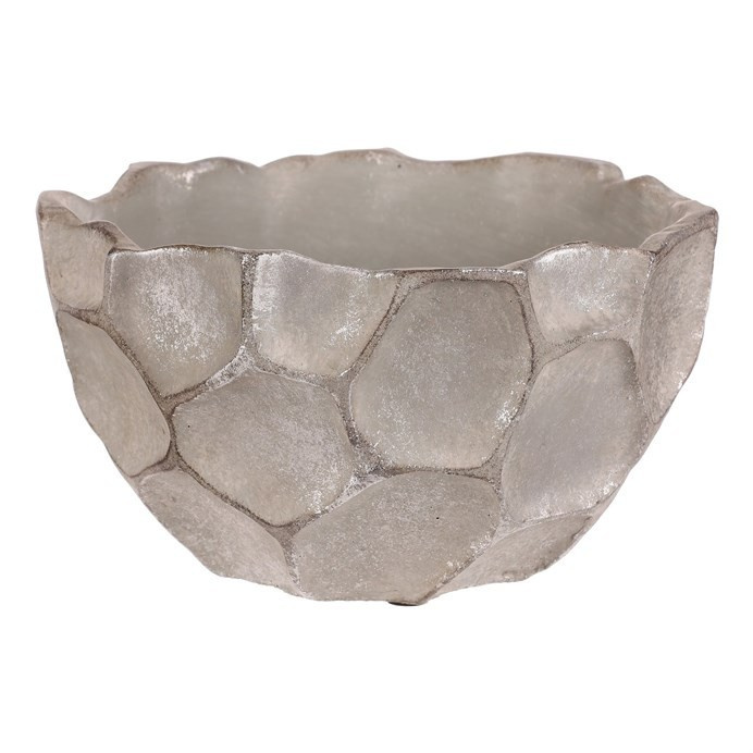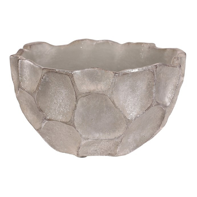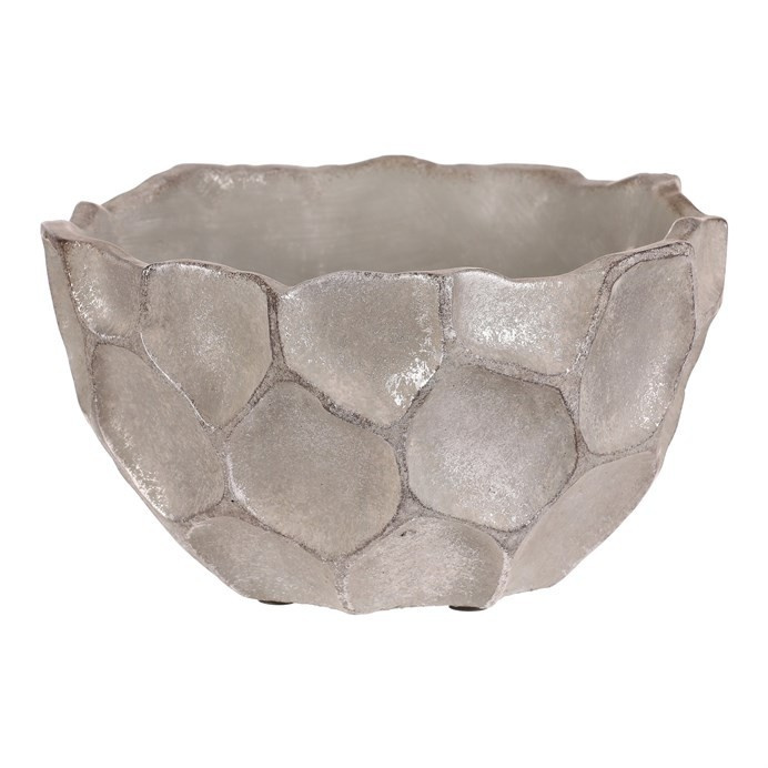 Obal betonový - vzor buněk, tvar mísy, vel. M, stříbrno-šedý