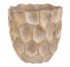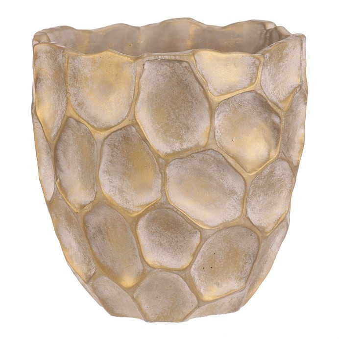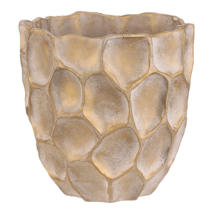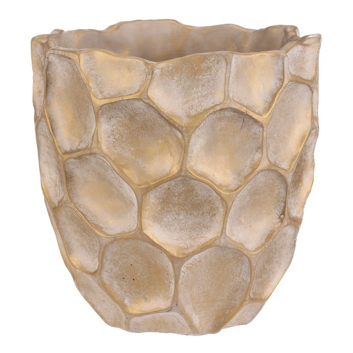 Béžovo-zlatý obal na květiny se vzorem připomínajícím plástev s nepravidelnými šestiúhelníkovými vzory, bude nádherným doplňkem zejména pro sváteční výzdobu. Je betonový, což zajišťuje jeho stabilitu, díky které bude pevným základem pro vaše oblíbené květiny, přízdoby a další dekorace.