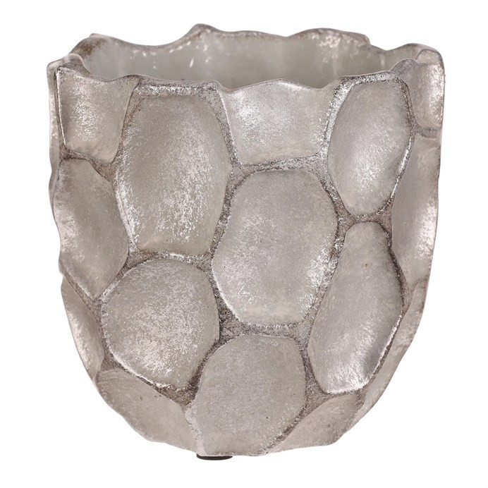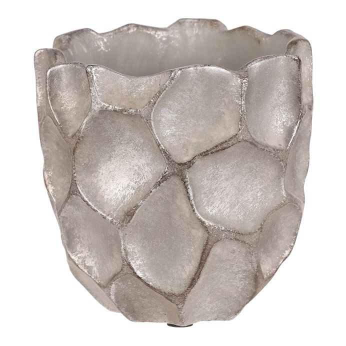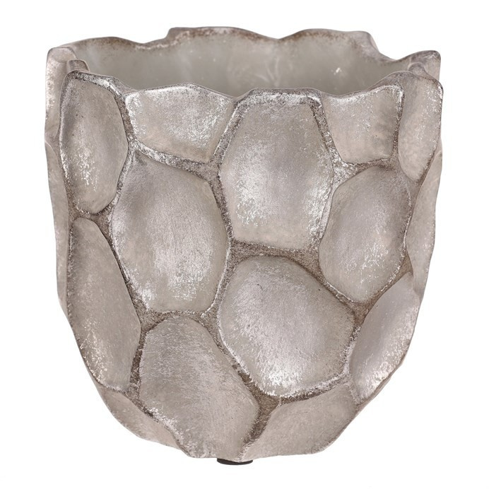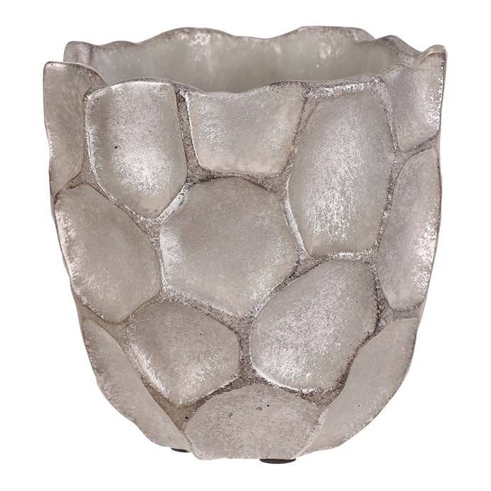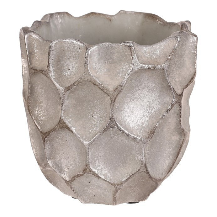 Betonový obal na květiny ve stříbrno-šedém provedení s výrazným vzorem buněk přináší do interiéru i exteriéru moderní industriální vzhled. Jeho pevný základ z betonu je navrženo pro dlouhou životnost a snadnou údržbu, přičemž nepravidelný reliéf povrchu dodává dekorativní efekt. Kompaktní velikost S umožňuje umístění na okenní parapet, stůl nebo menší poličku, kde vynikne jako samostatný dekorativní prvek nebo jako doplněk k rostlinám. Obal je stabilní a díky materiálu vhodný i pro venkovní použití za různých povětrnostních podmínek.