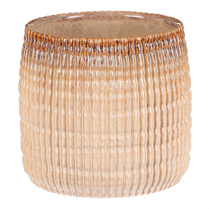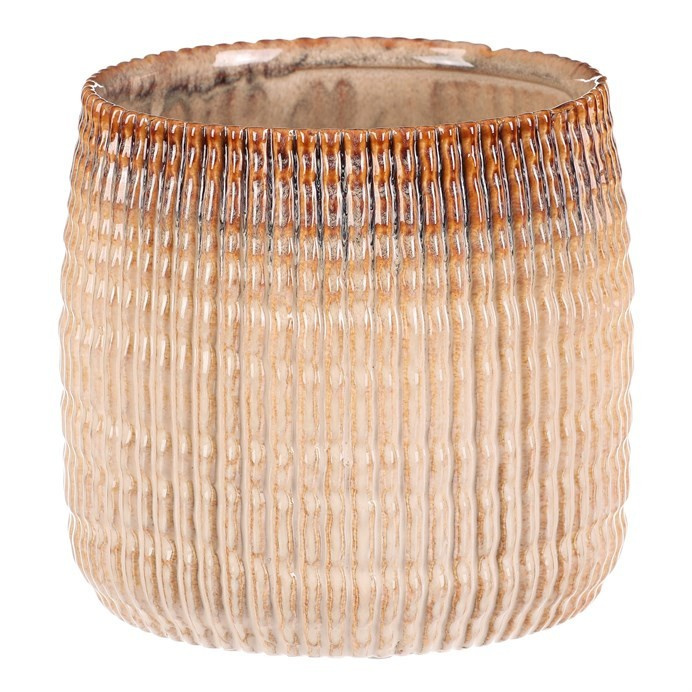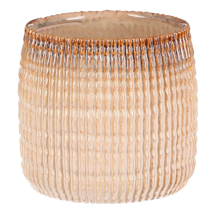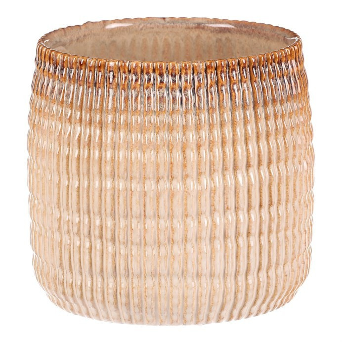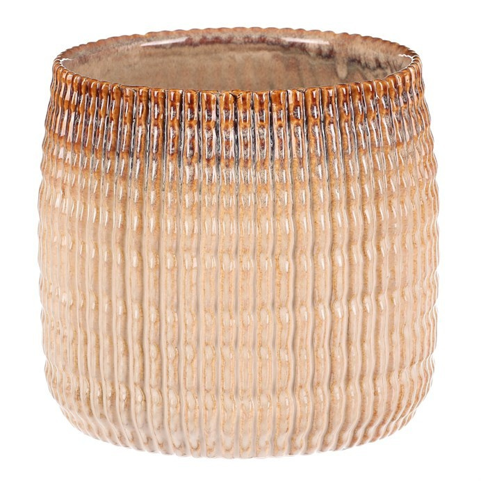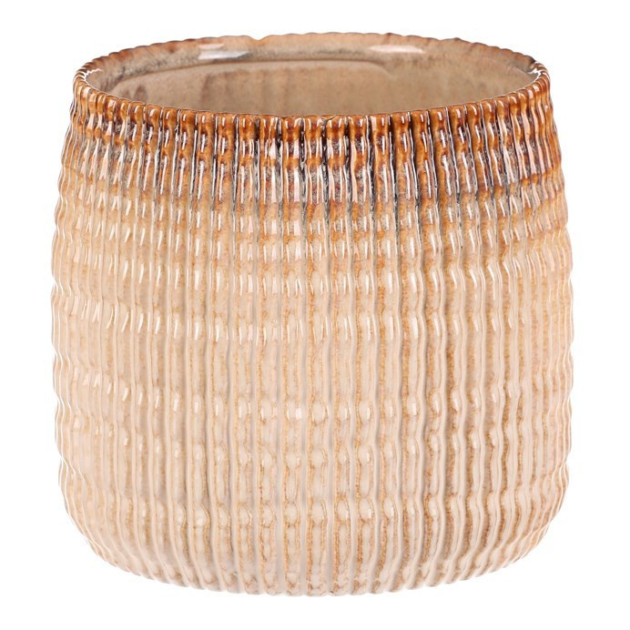 Elegantní keramický obal na květiny v béžovo-hnědých odstínech, zaujme svým vlnitým povrchem, který přidává na zajímavosti a textuře. Je ideální pro zvýraznění vašich oblíbených rostlin a přináší do každého prostoru sofistikovaný dotek přírody. Jeho nadčasový design se hodí do jakéhokoli interiéru, od moderního po tradiční, a dodá vašemu domovu útulnou atmosféru.