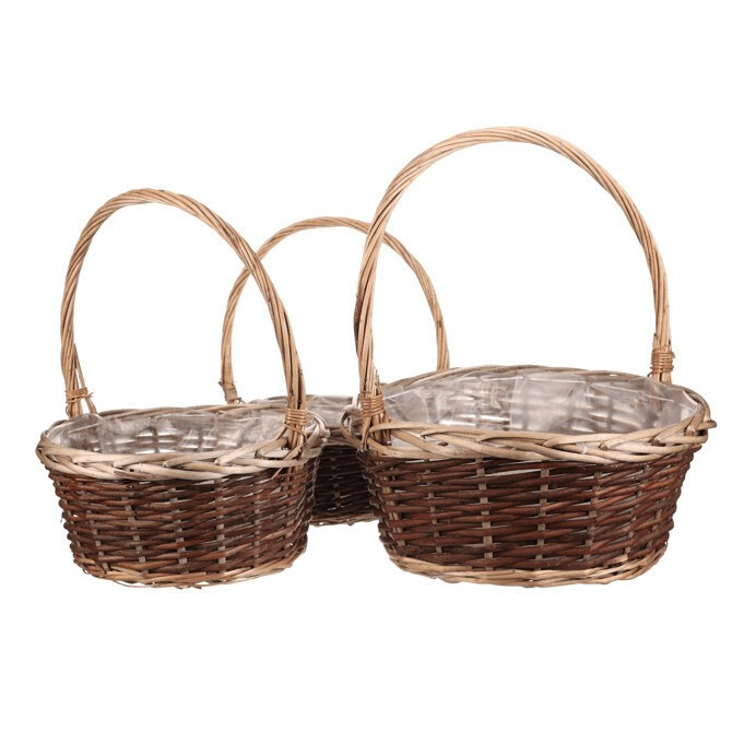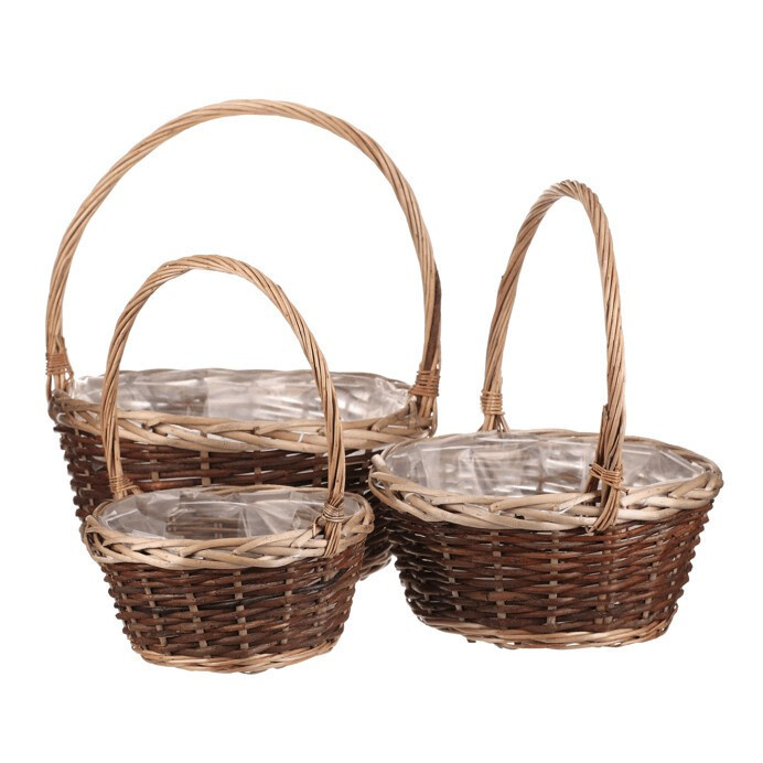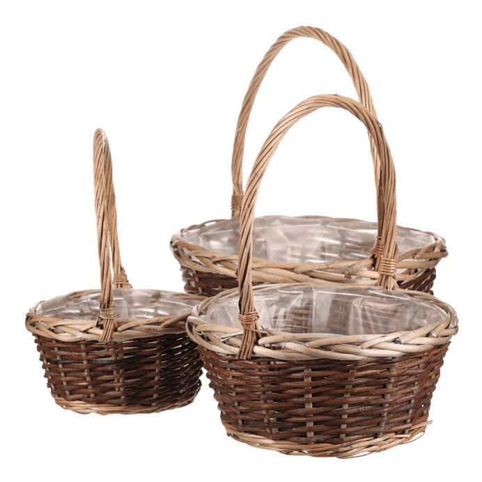 Obal na květiny - proutěný košík, cena za sadu 3 ks