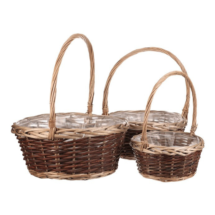 Sada tří proutěných obalů na květiny ve tvaru košíku s výraznou rukojetí přináší styl i funkčnost. Béžová a hnědá barva tvoří elegantní kombinaci přírodních odstínů, která ladí s jakýmkoli prostorem. Každý košík je vybaven ochrannou igelitovou vložkou, takže je ideální nejen pro aranžování dekorací, ale i samotných květin.
