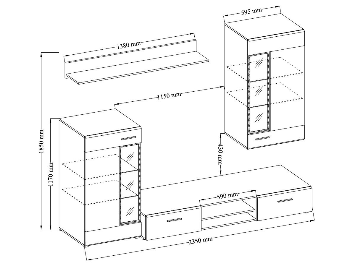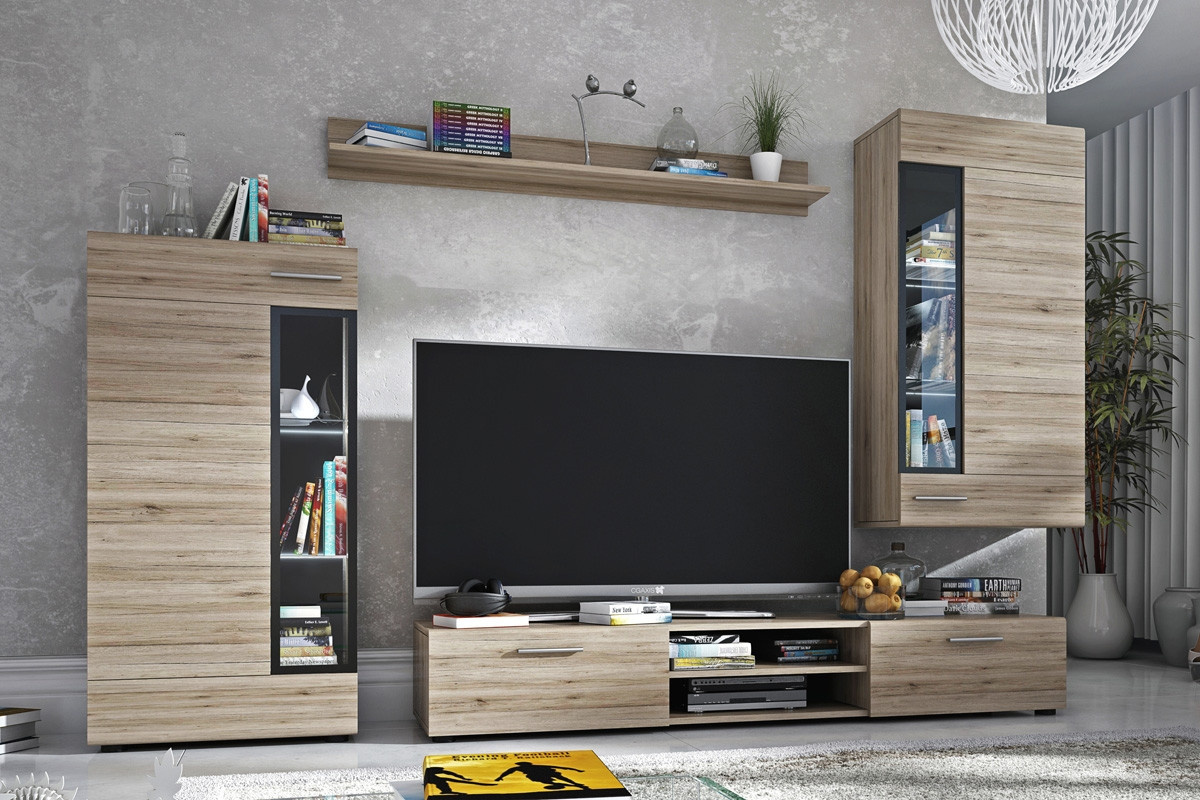 Obývací stěna Ivan San Remo tmavé, šířka: 235, výška: 185, hloubka: 40,2, Montáž: Vlastní. Moderní nabídka obývacího kompletu Tango ve verzi San Remo.