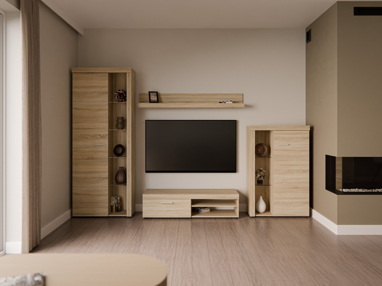 Obývací stěna Rizo patří mezi oblíbené modely moderního nábytku. Nabízí dostatek úložného prostoru a je vhodná i do menších pokojů. Stěna je vyrobena z lamina, které je odolné a snadné na údržbu. Ke stěně nabízíme i několik typů komod ve stejném provedení. Všechny prvky této sestavy jsou dodávány v demontu. Součástí je montážní plánek včetně všech potřebných spojovacích materiálů. Cena je uvedena za bytovou stěnu vyobrazenou na úvodní fotografii, bez komod, doplňků a dekorací. LED osvětlení není v ceně sestavy. Vlivem nastavení monitorů, nebo displejů telefonů, se zobrazení barev na fotograii může od skutečnosti lišit.