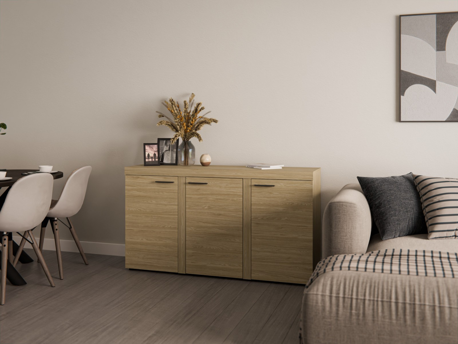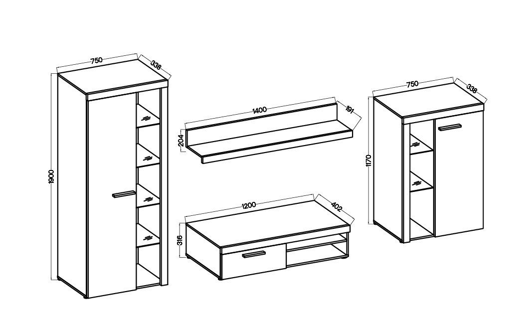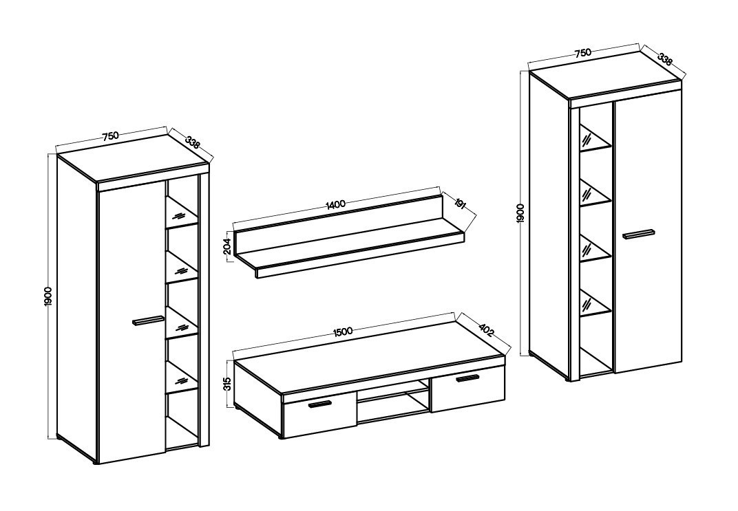 Obývací stěna Rizo patří mezi oblíbené modely moderního nábytku. Nabízí dostatek úložného prostoru a je vhodná i do menších pokojů. Stěna je vyrobena z lamina, které je odolné a snadné na údržbu. Ke stěně nabízíme i několik typů komod ve stejném provedení. Všechny prvky této sestavy jsou dodávány v demontu. Součástí je montážní plánek včetně všech potřebných spojovacích materiálů. Cena je uvedena za bytovou stěnu vyobrazenou na úvodní fotografii, bez komod, doplňků a dekorací. LED osvětlení není v ceně sestavy.
